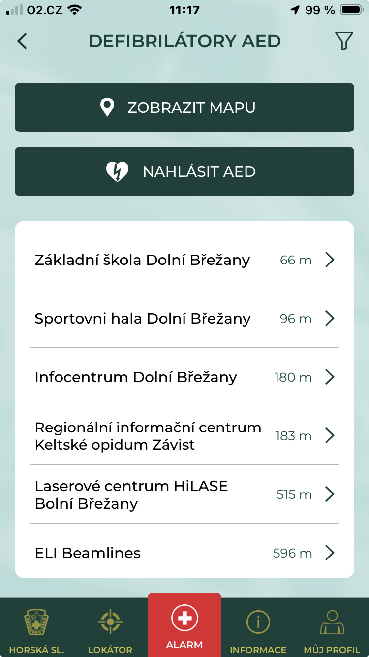 Oba AED defibrilátory jsou zařazeny v seznamu těchto zařízení v aplikaci Záchranka, informace o jejich umístění je tak dostupná široké veřejnosti.