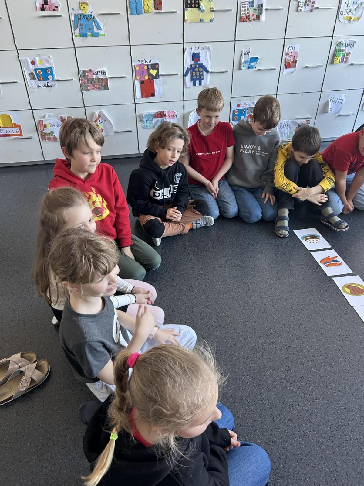 V hodině angličtiny s paní učitelkou Štambachovou jsme se tentokrát věnovali tématu The Lunch – jídlo a oběd. Děti se seznamovaly s novými anglickými slovíčky pomocí obrázků, poslechu a společného opakování. Učily se názvy různých jídel, jako je apple, banana, pizza, chicken, carrots a další, a postupně si je upevňovaly v krátkých aktivitách.