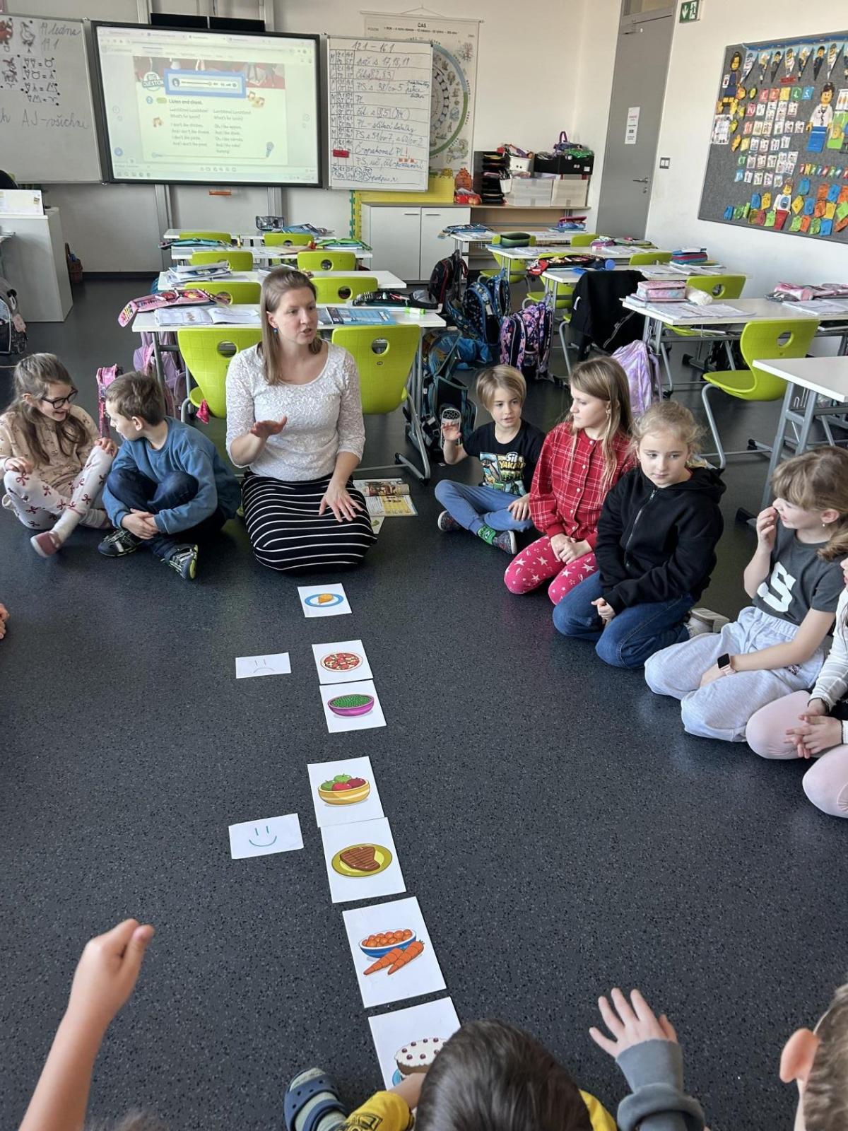 Jak se učit anglická slovíčka tak, aby děti bavila a opravdu si je zapamatovaly? Ve 2. A jsme se do tématu jídla pustili všemi smysly – poslechem, pohybem, rytmem i sdílením toho, co máme (a nemáme) rádi.
