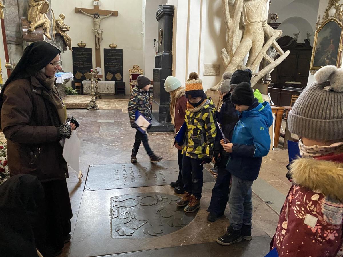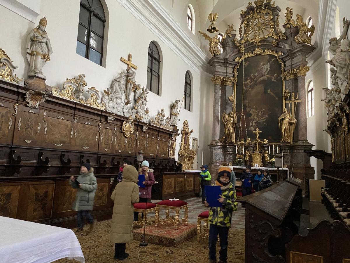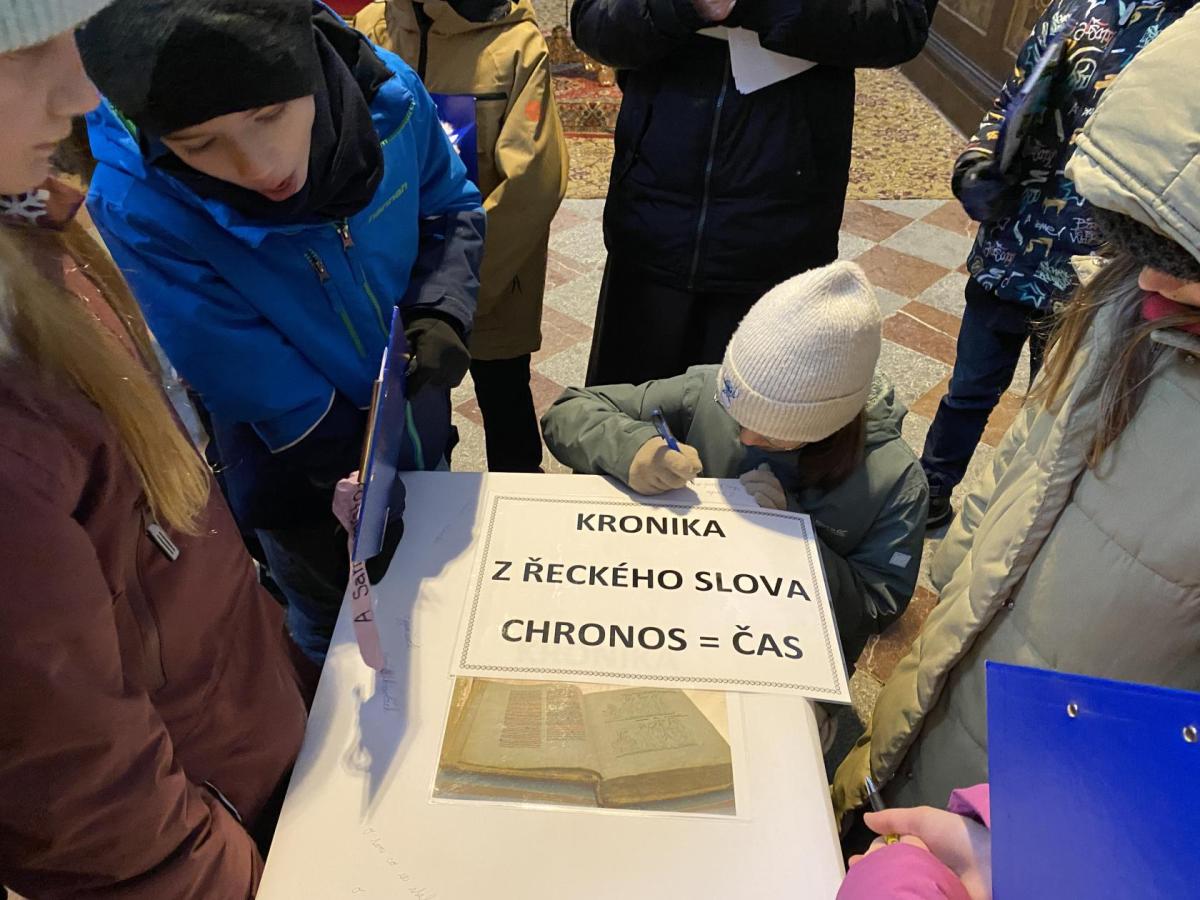 Prohlédli jsme si vybavení a uměleckou výzdobu vnitřních prostor kostela. Dozvěděli se více o jeho historii i o každodenním životě mnichů, kteří byli v minulých dobách významnými představiteli vzdělanosti. Významnou částí programu bylo také čtení ze Zbraslavské kroniky. Zopakovali jsme si význam těchto knih (kronik), do kterých se zaznamenávaly důležité události své doby, a tím nám dnes pomáhají lépe historii porozumět.