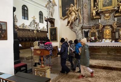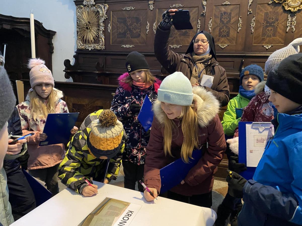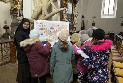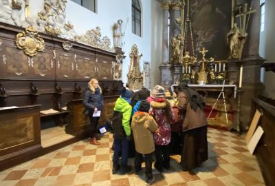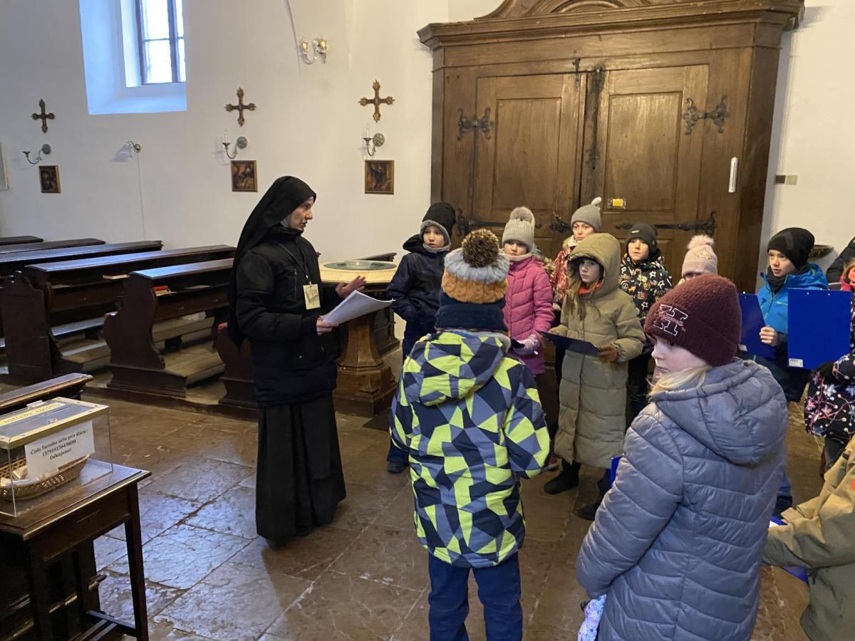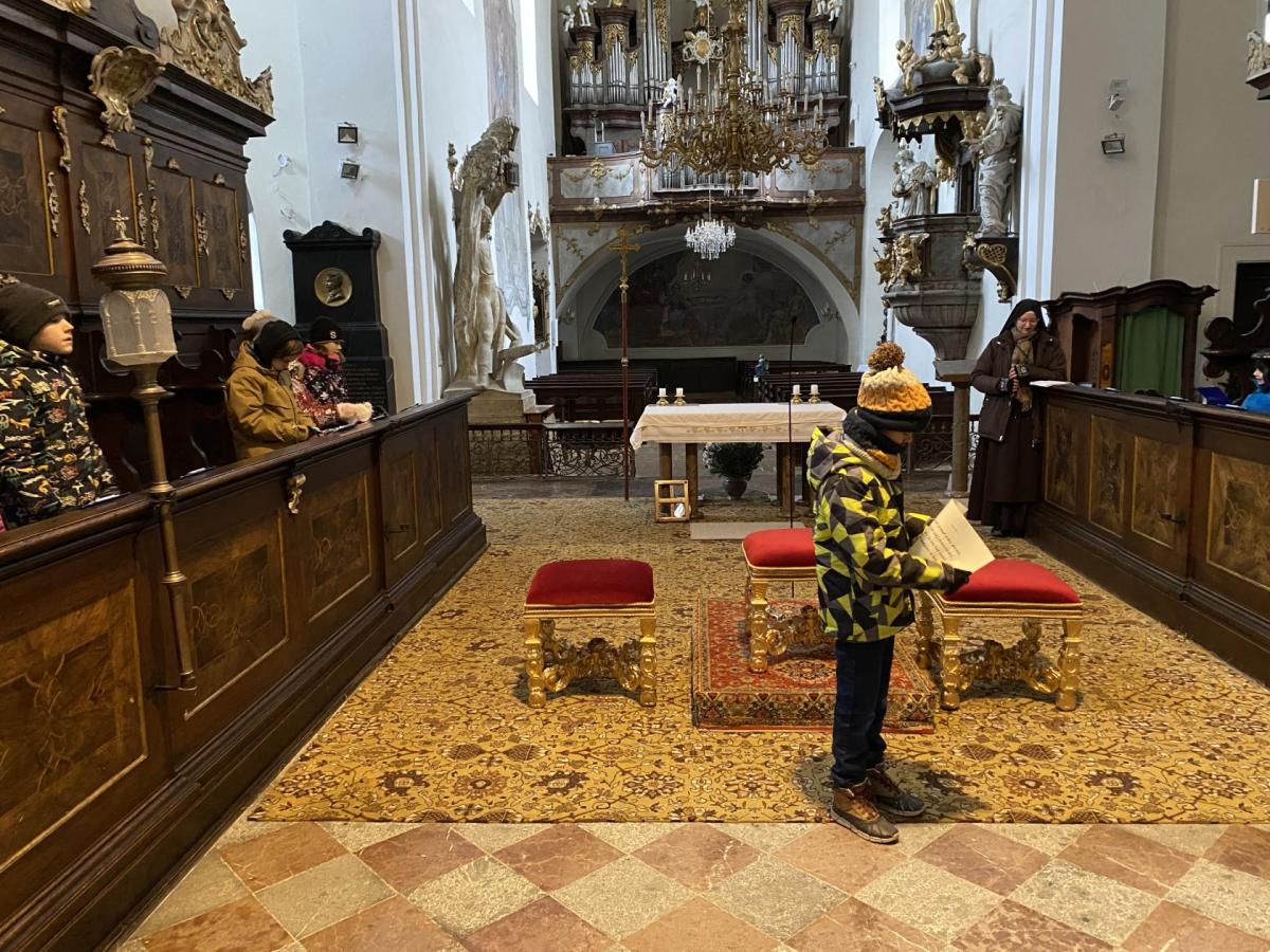 Prohlédli jsme si vybavení a uměleckou výzdobu vnitřních prostor kostela. Dozvěděli se více o jeho historii i o každodenním životě mnichů, kteří byli v minulých dobách významnými představiteli vzdělanosti. Významnou částí programu bylo také čtení ze Zbraslavské kroniky. Zopakovali jsme si význam těchto knih (kronik), do kterých se zaznamenávaly důležité události své doby, a tím nám dnes pomáhají lépe historii porozumět.