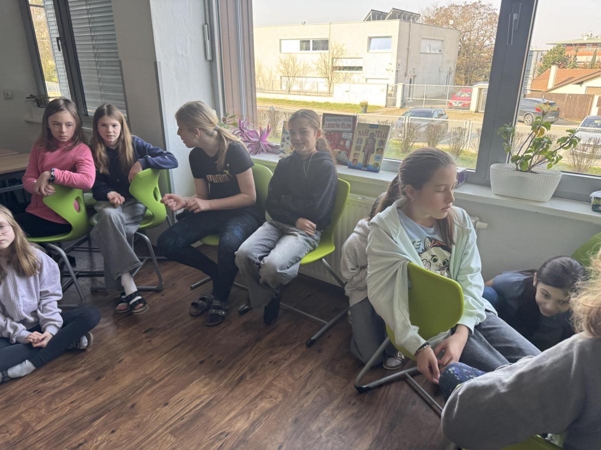 V pondělí 23. března se páťáci věnovali v Kiva lekci tématu Šikana a kolektiv. Zopakovali si, jaké role může mít jednotlivec při šikaně. Dozvěděli se, jak se jednotlivci v rolích chovají a jak se cítí. Zkusili si namodelovat šikanu při hře za pomoci židlí a okomentovat ji.
