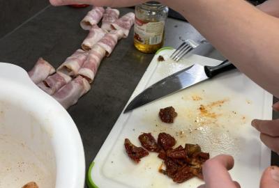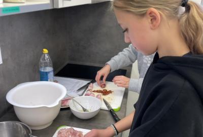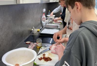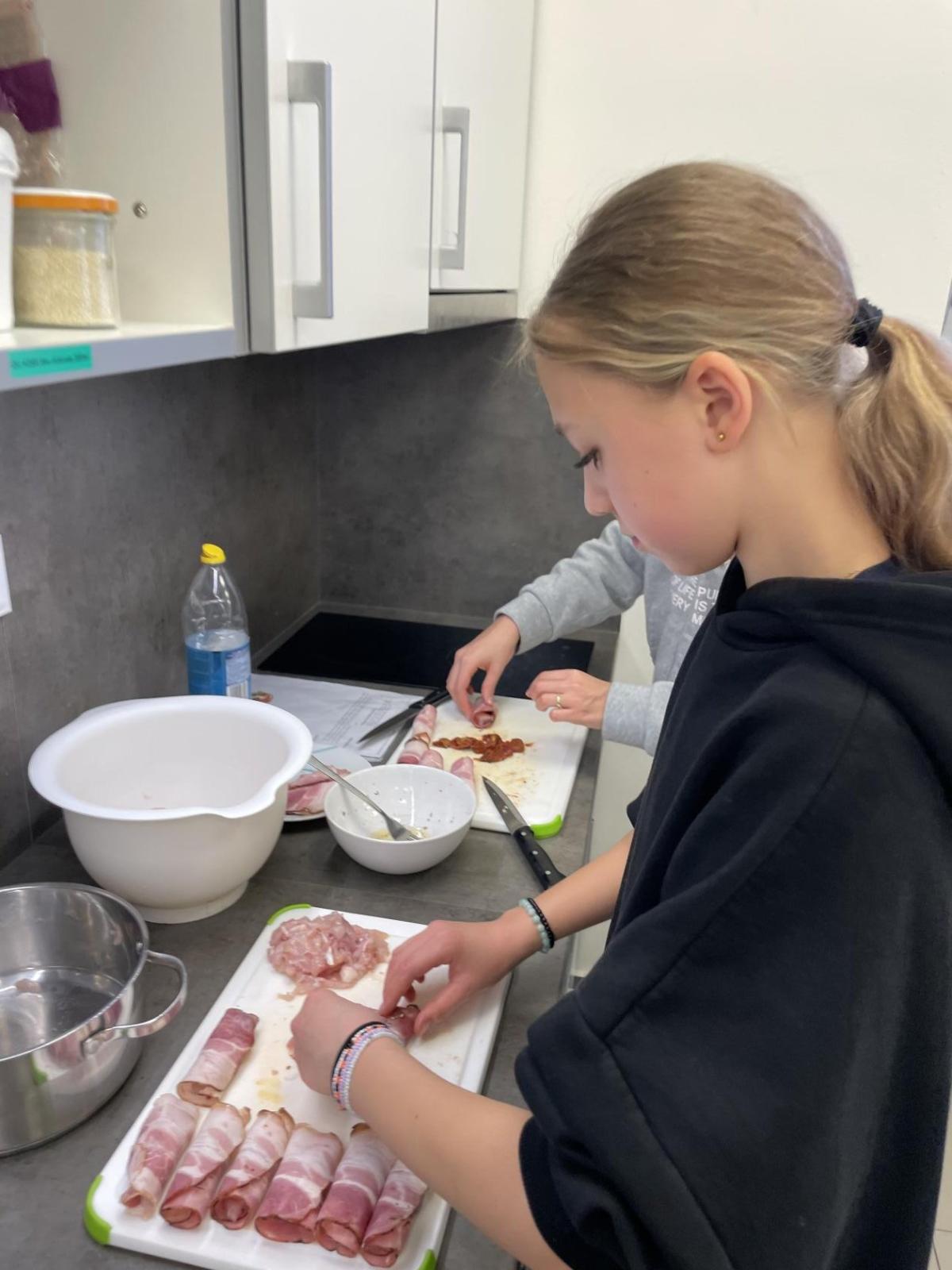 Jednoduché, ale na pohled efektivní a velmi chutné pokrmy připravovala dnes skupina dětí třídy 8.B. Fotogalerie vám představí jejich přípravu a hotové pokrmy.