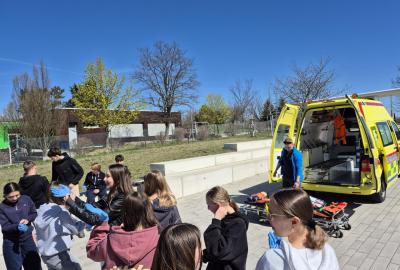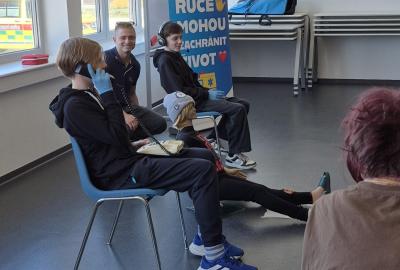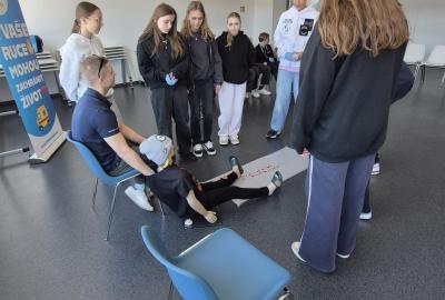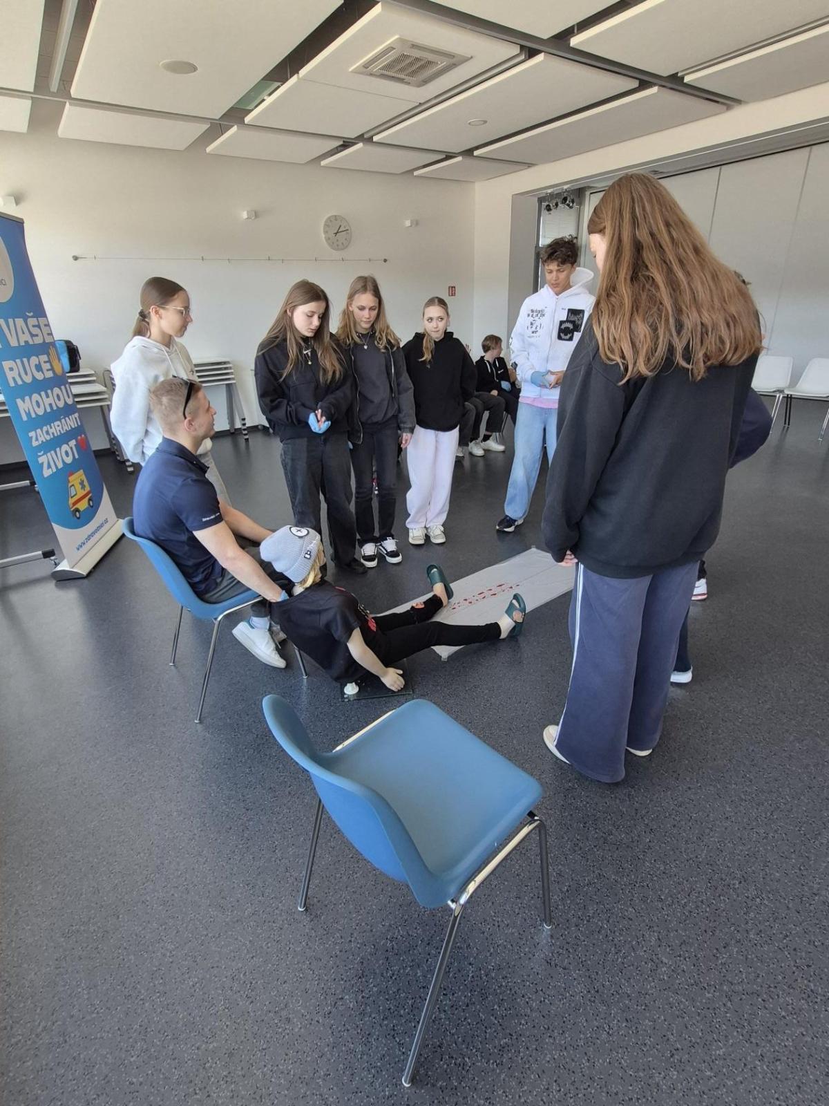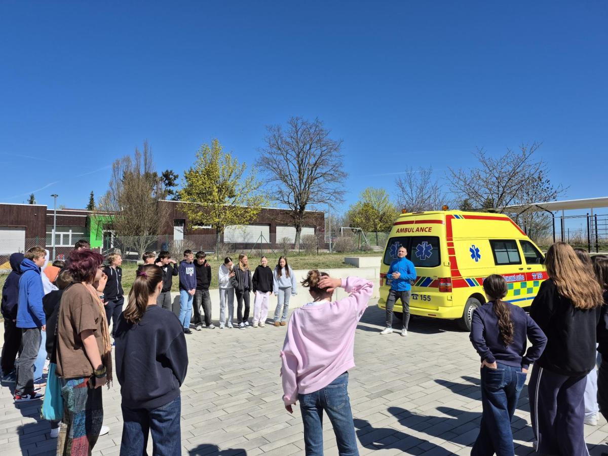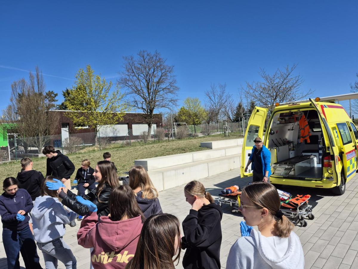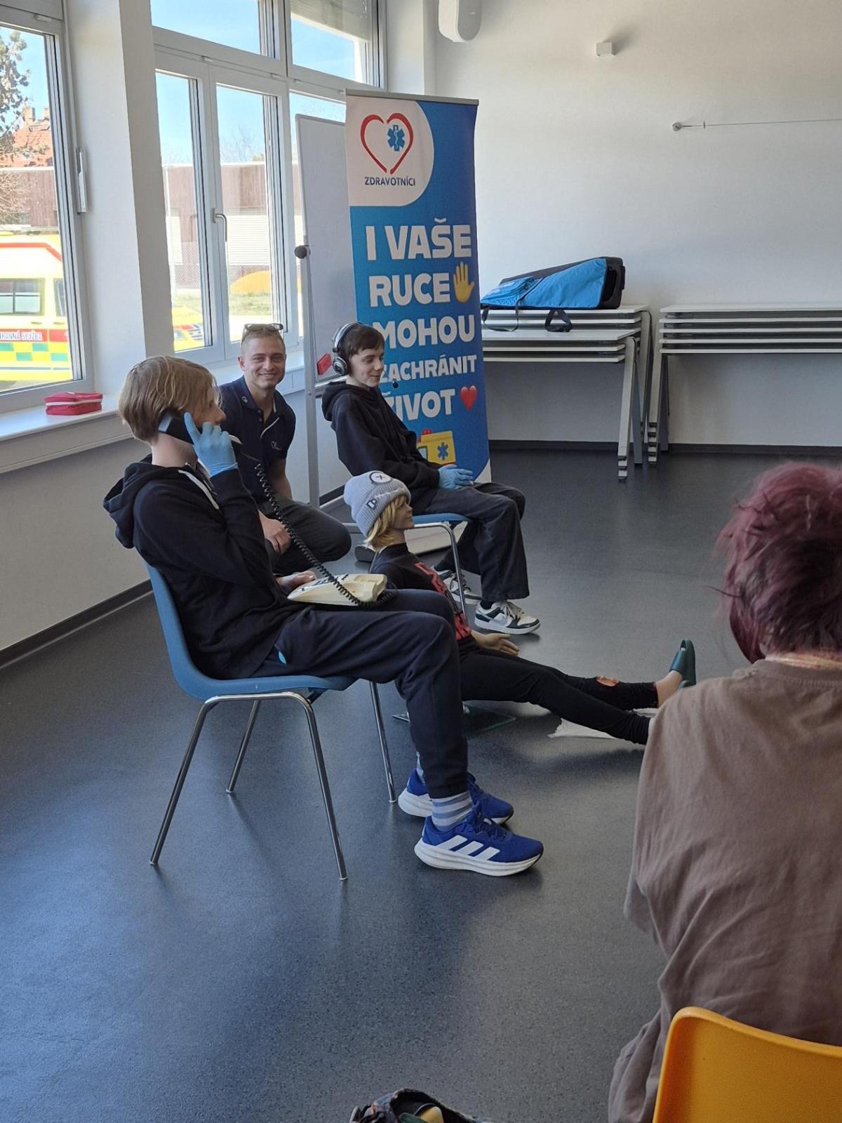 Dnes jsme měli vzácnou návštěvu. Zastavili se u nás členové organizace zdravotníci, kteří s námi probrali zásady první pomoci i základní techniky. Teď už víme, jak vypadá tlakový obvaz, co všechno je v sanitce a nebojíme se ani zavolat na dispečink záchranné služby.