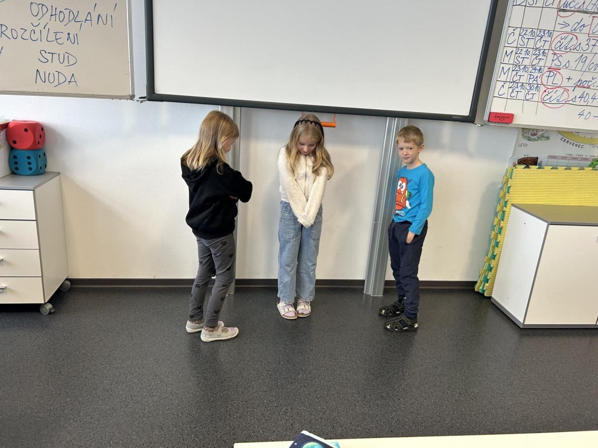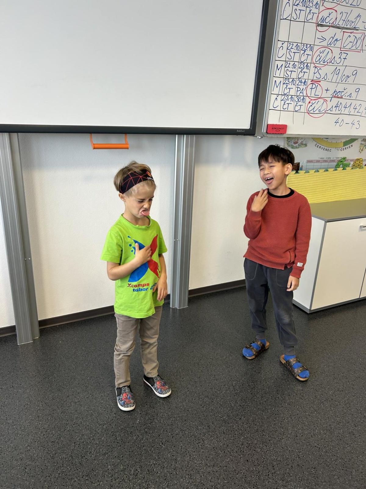 Poté jsme se zapojili do aktivit, které byly zaměřené na pojmenovávání a rozpoznávání emocí podle výrazů tváře, tónu hlasu a tělesných projevů. Zkoušeli jsme také, jak různé emoce „vypadají“ – děti se proměnily v malé herce a pantomimicky předváděly různé pocity, které ostatní hádaly. Bylo u toho hodně smíchu, ale i vážných chvil, když jsme mluvili o tom, co dělat, když se někdo cítí špatně nebo když se nám nedaří.