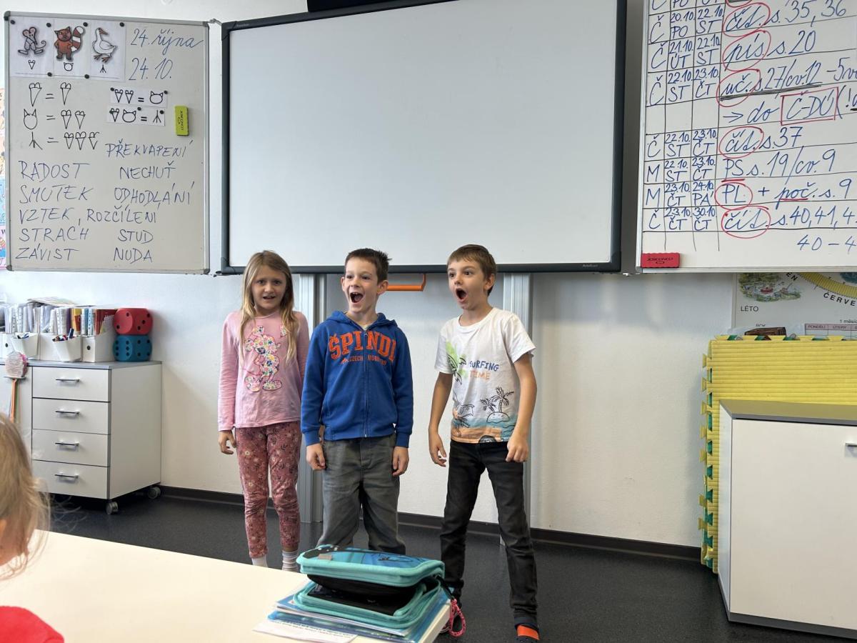 V pátek 24. října jsme se v našem třídním bloku znovu věnovali programu KiVa, který pomáhá dětem učit se navzájem lépe poznávat, spolupracovat a vytvářet bezpečné prostředí ve třídě. Tentokrát byla naše druhá lekce věnována tématu „Emoce“.