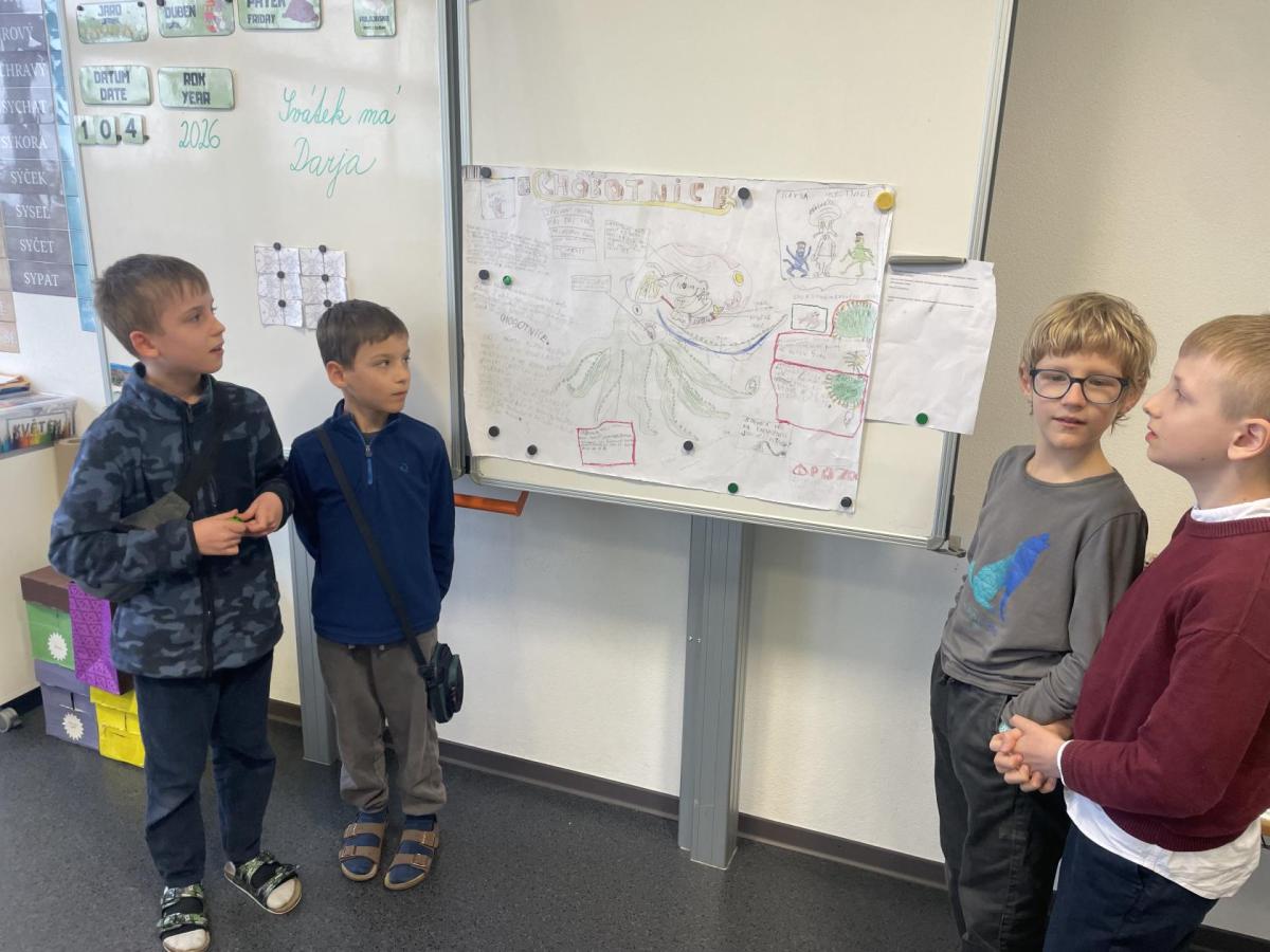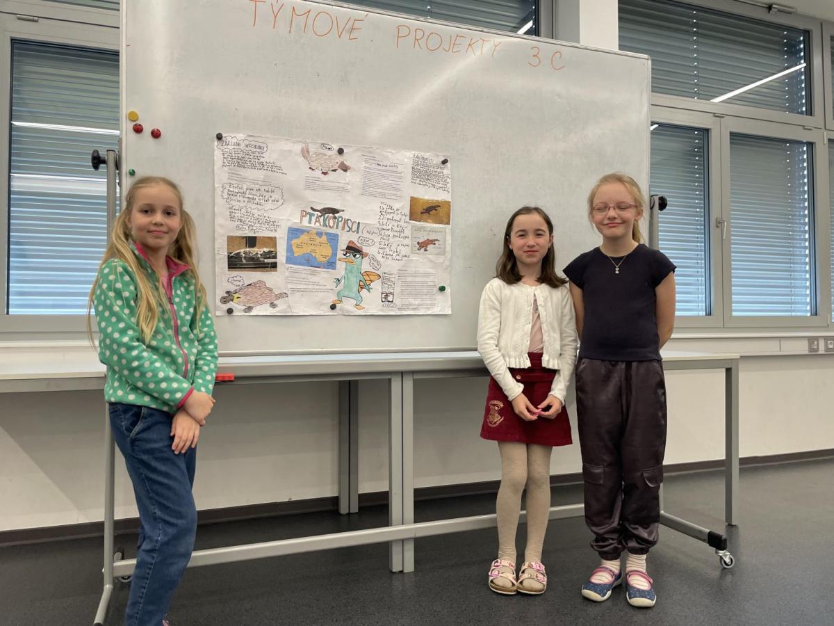 Největší úspěch měla nakonec skupinka ve složení Terka, Ema a Mája s projektem na téma PTAKOPYSK. Jejich práce zaujala nejen obsahem, ale i způsobem prezentace.