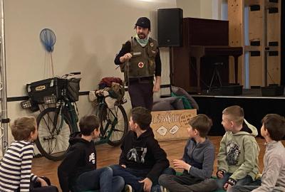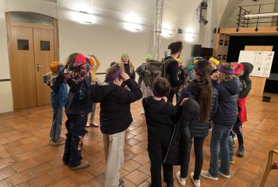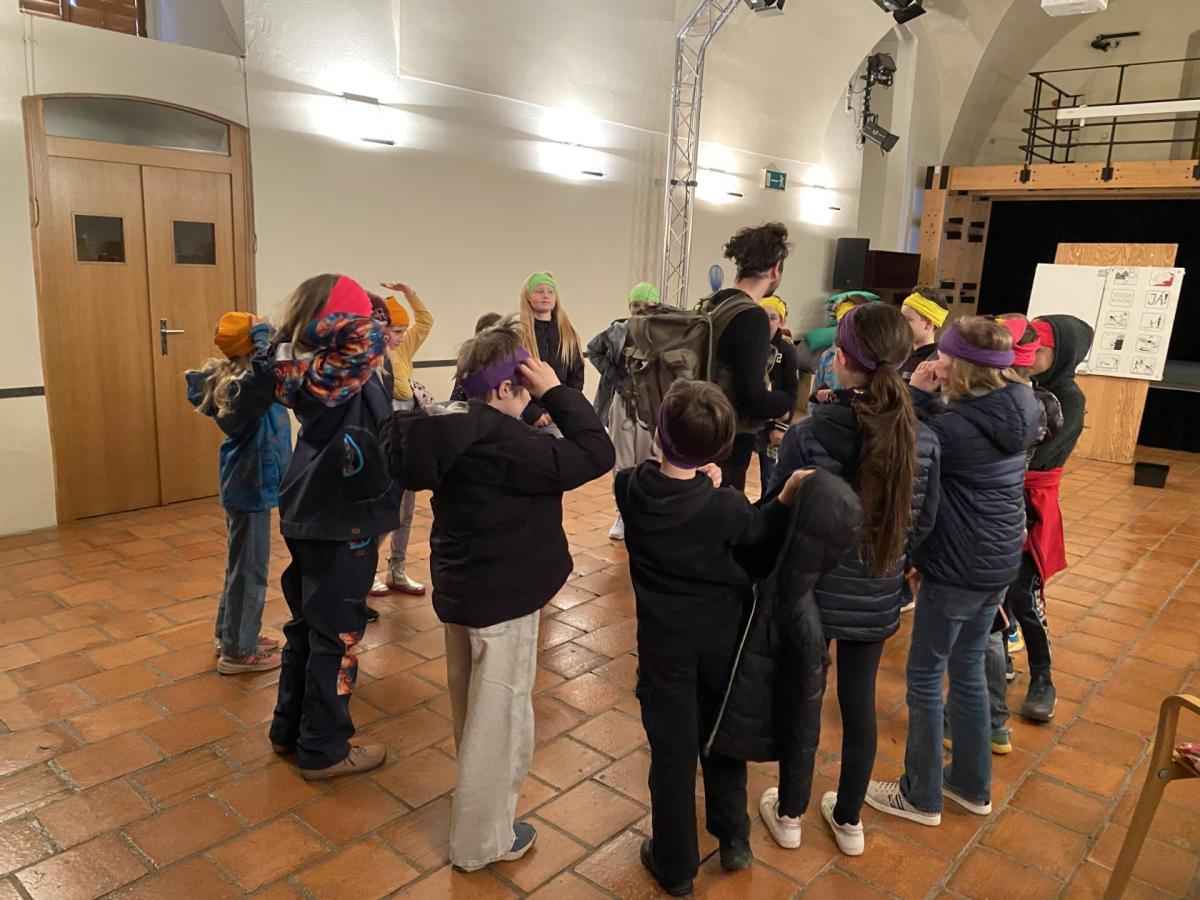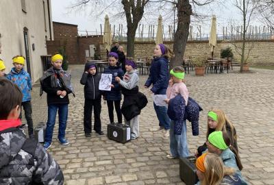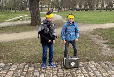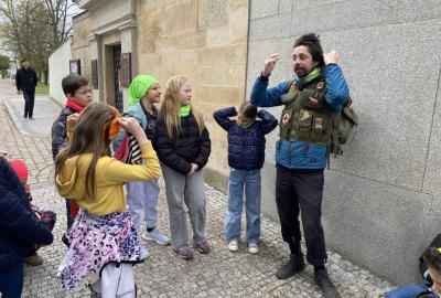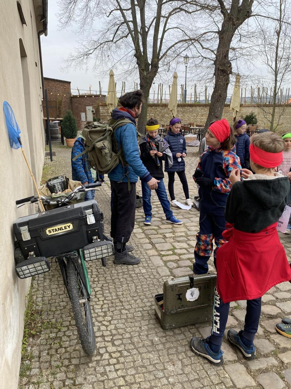 Zajímavý program s názvem "Mise Vyšehrad" jsme zahájili v prostorách starého purkrabství dávného Královského okrsku. Průvodce našeho dopoledne, Vítek Maštalíř, za námi přijel na koloběžce, obtěžkán různými nezbytnými rekvizitami a bez dlouhých okolků přešel k věci.....