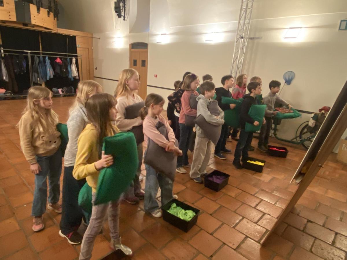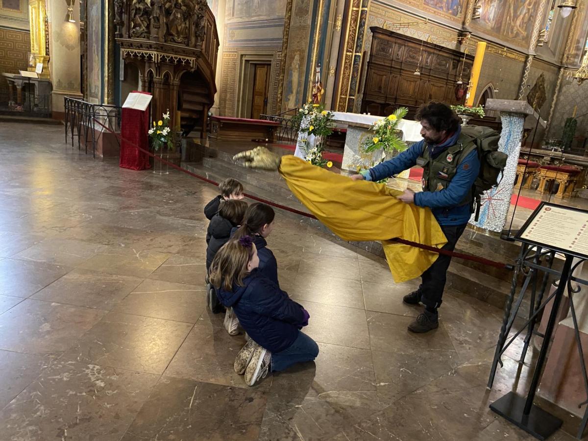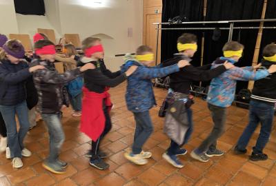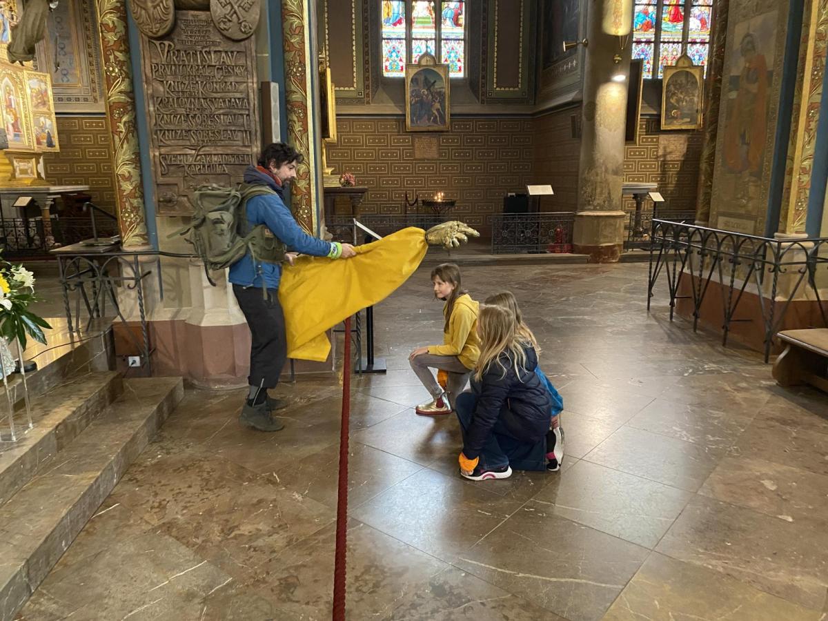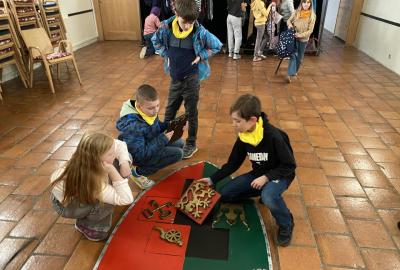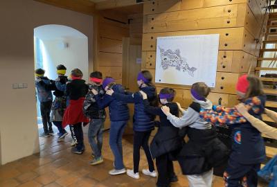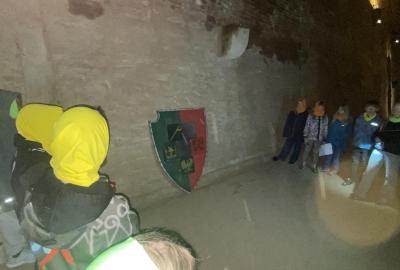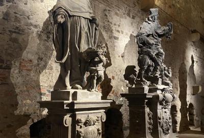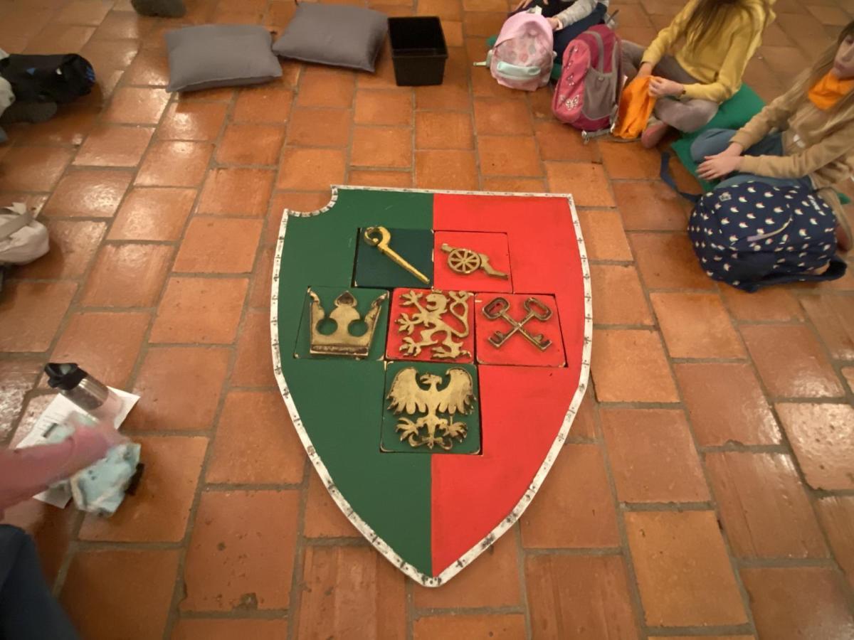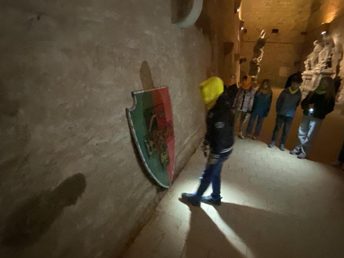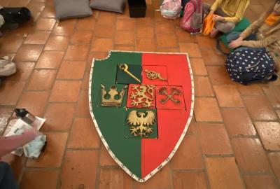 Na konci celého programu jsme ze všech postupně sesbíraných indícií - znaků sestavili erb. Ztemnělá Gorlice postupně vystupovala ze tmy, jak jsme přikládali do erbu jednotlivé dílky. Teprve s posledním kouskem jsme se mohli rozhlédnout a obdivovat originály soch z Karlova mostu, které vznikly kdysi dávno v dílně Matyáše Brauna.