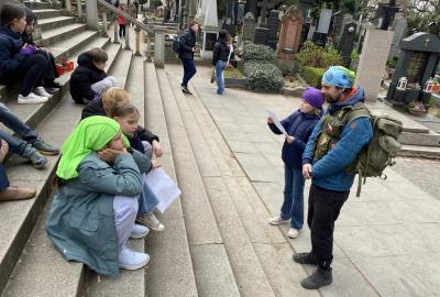 Další část našeho bádání probíhala na přilehlém hřbitově, kde jsme nejen plnili další úkoly, ale také si uvědomili význam tohoto místa a osobností, které jsou zde pochovány. Velkým zážitkem byla i procházka kasematami, kde panovala tajemná atmosféra a člověk si dokázal lépe představit, jak to zde fungovalo v dobách husitských válek, švédských nájezdů či v průběhu obležení Vyšehradu francouzskými pluky.