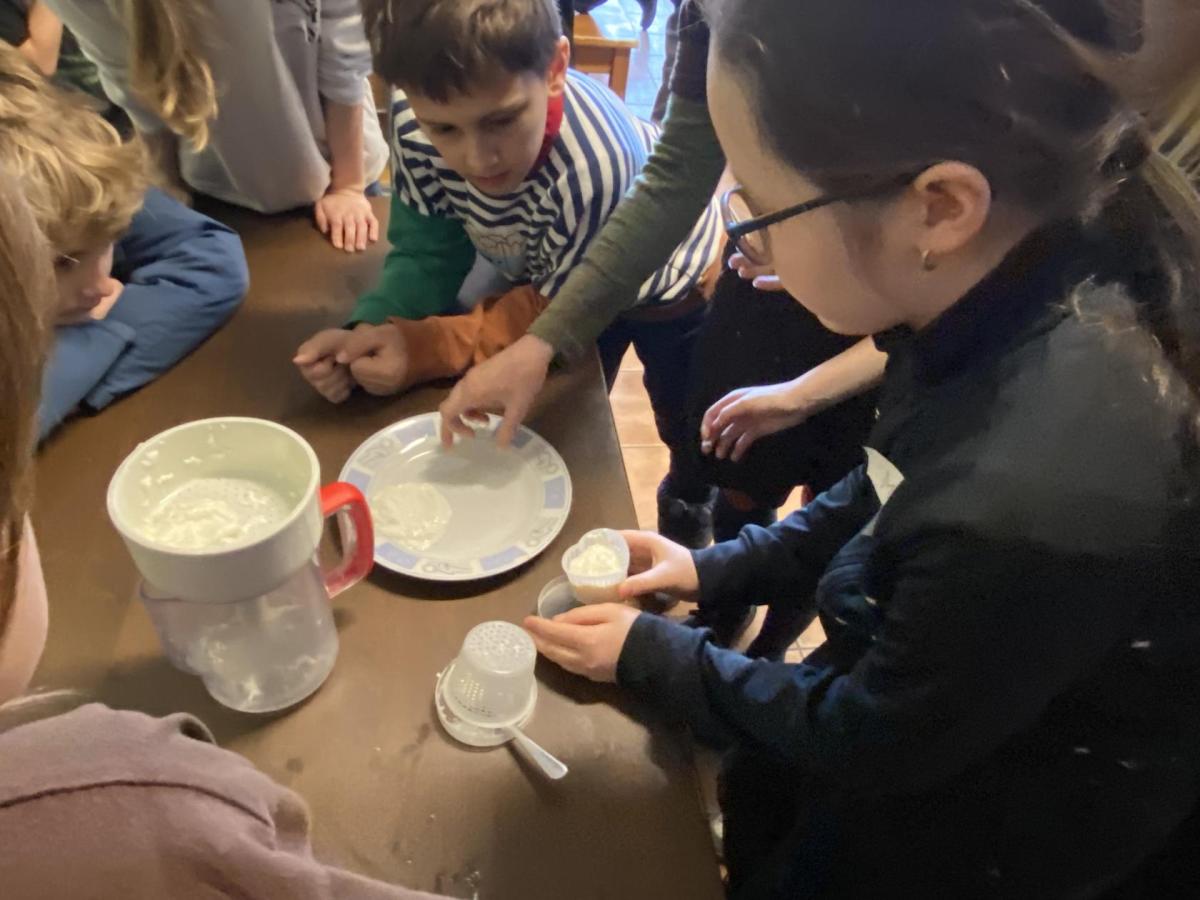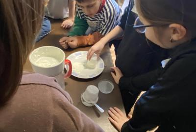 Program byl zaměřený na mléko a vše, co s ním souvisí. Povídali jsme si o tom, jak se o krávy pečuje, co potřebují ke spokojenému životu a jak probíhá cesta mléka od krávy až na náš stůl. Děti si vyzkoušely dojení z umělého vemena a vlastnoručně si vyrobily sýr, což byl pro všechny velký zážitek.