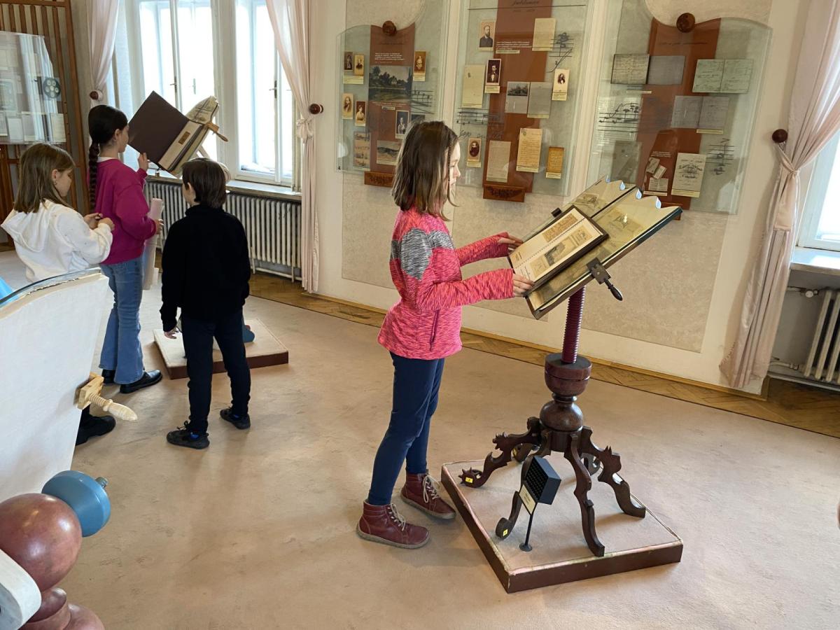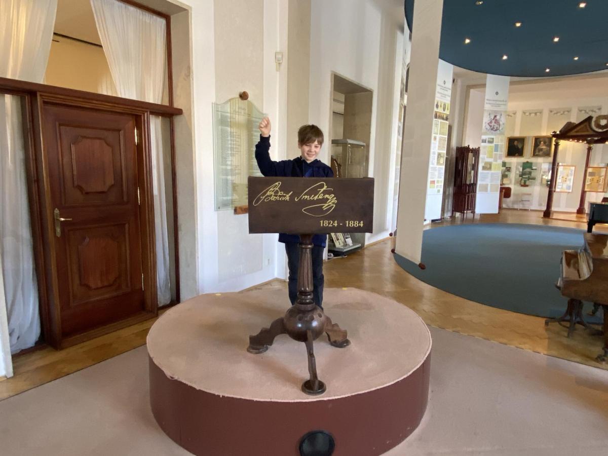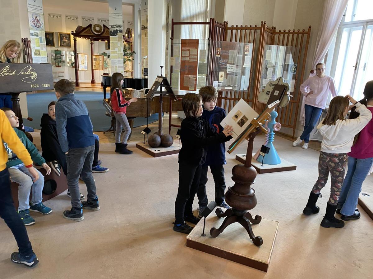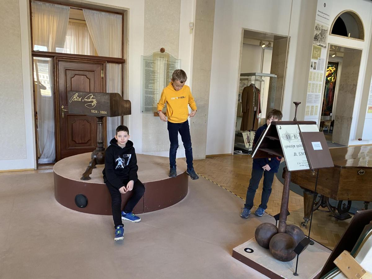 Nejprve jsme se dozvěděli různé informace o skladbě. Poslouchali jsme ukázky hudby a povídali o tom, jak skladatel pomocí tónů popisuje cestu řeky od pramenů až po její tok krajinou. Dozvěděli jsme se také, jak hudba znázorňuje různé scény, například lesy, svatbu na venkově nebo proud řeky. Poté jsme si prohlédli muzejní expozice. Viděli jsme předměty, které Bedřich Smetana skutečně používal - jeho osobní věci, dokumenty a informace o jeho hudební tvorbě. Nejvíc nás zaujalo, jak maličké brýle pan skladatel nosil, a jak nádhernými šperky z českých granátů se zdobila paní Kateřina Smetanová. Návštěva muzea byla zajímavá a poučná. Pomohla nám lépe poznat život a tvorbu jednoho z nejvýznamnějších českých hudebních skladatelů.