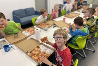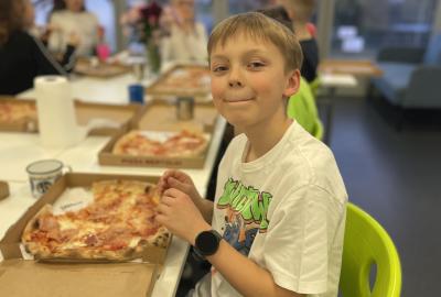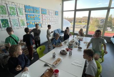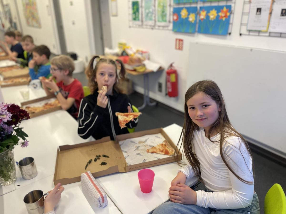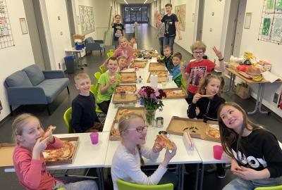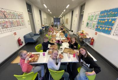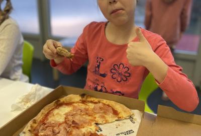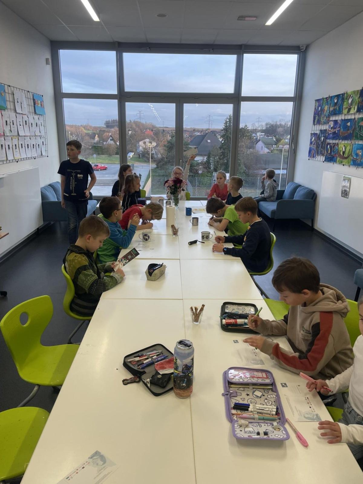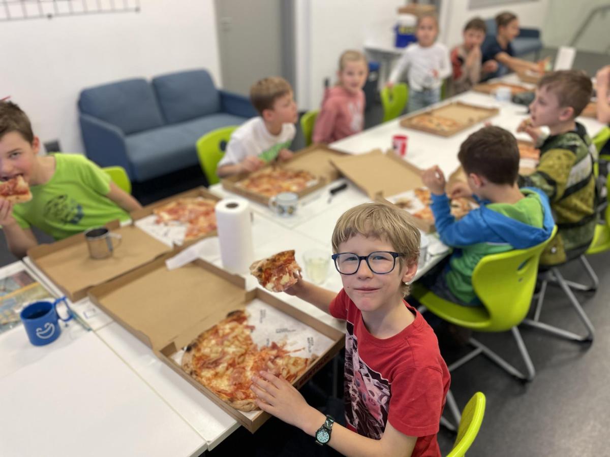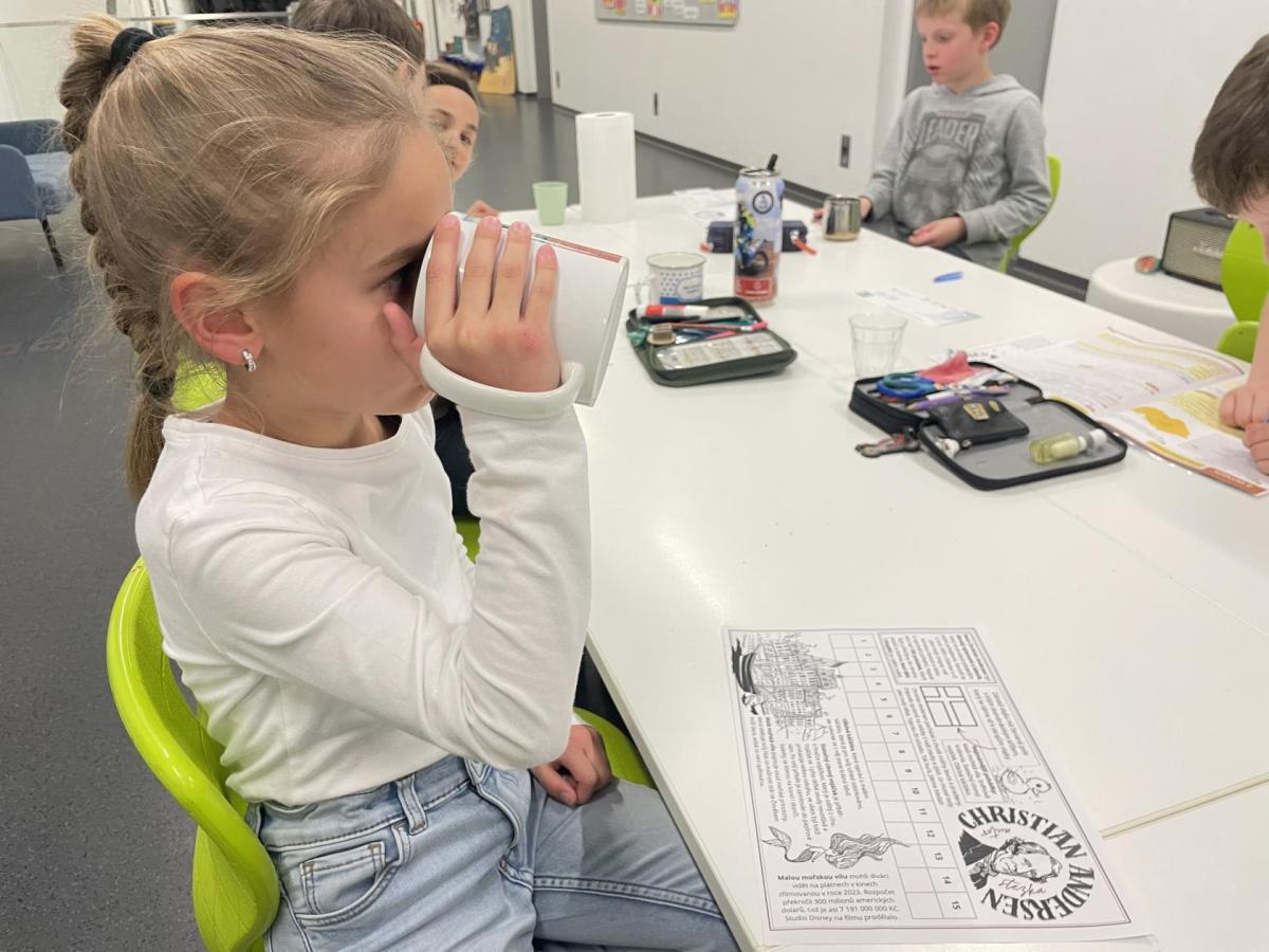 Celý program jsme zahájili ve třídě, kde jsme si společně přečetli text o slavném dánském spisovateli. Poté se děti pustily do psaní pohledů a sdílení svých dojmů. Nechyběla ani zasloužená večeře – výbornou pizzu nám zajistil pan Petráš, za což mu patří velké poděkování.