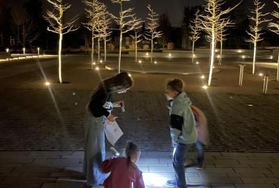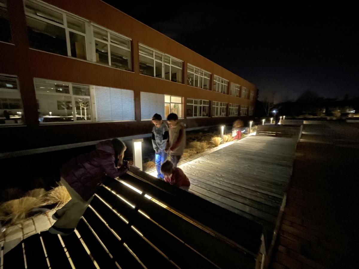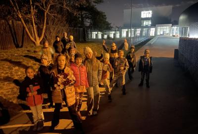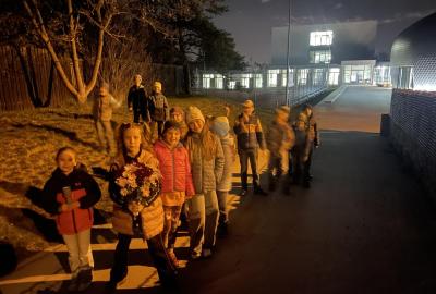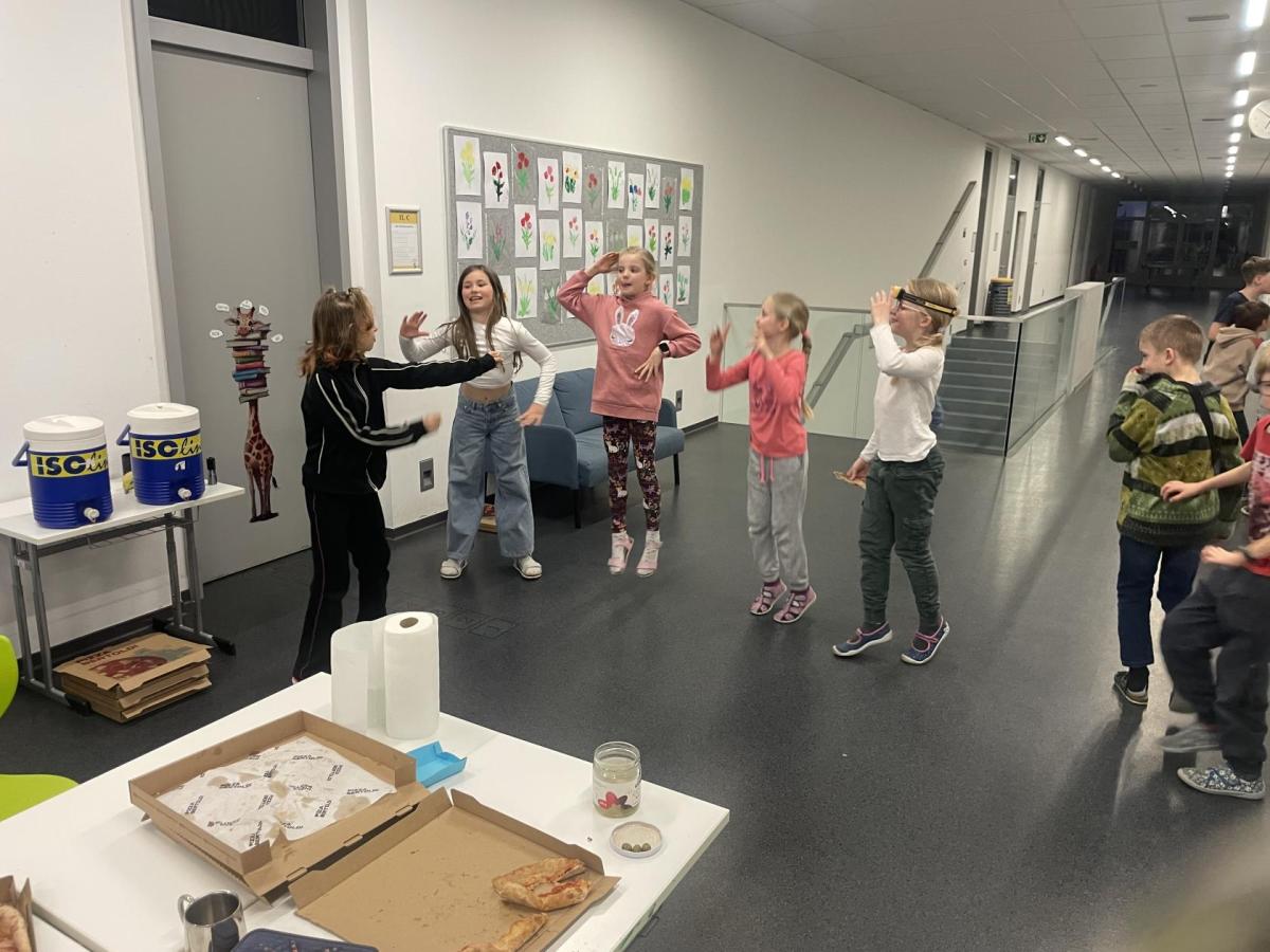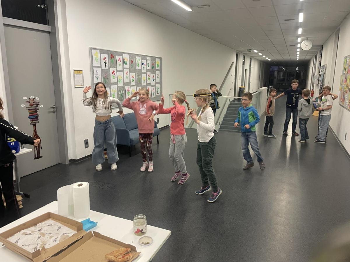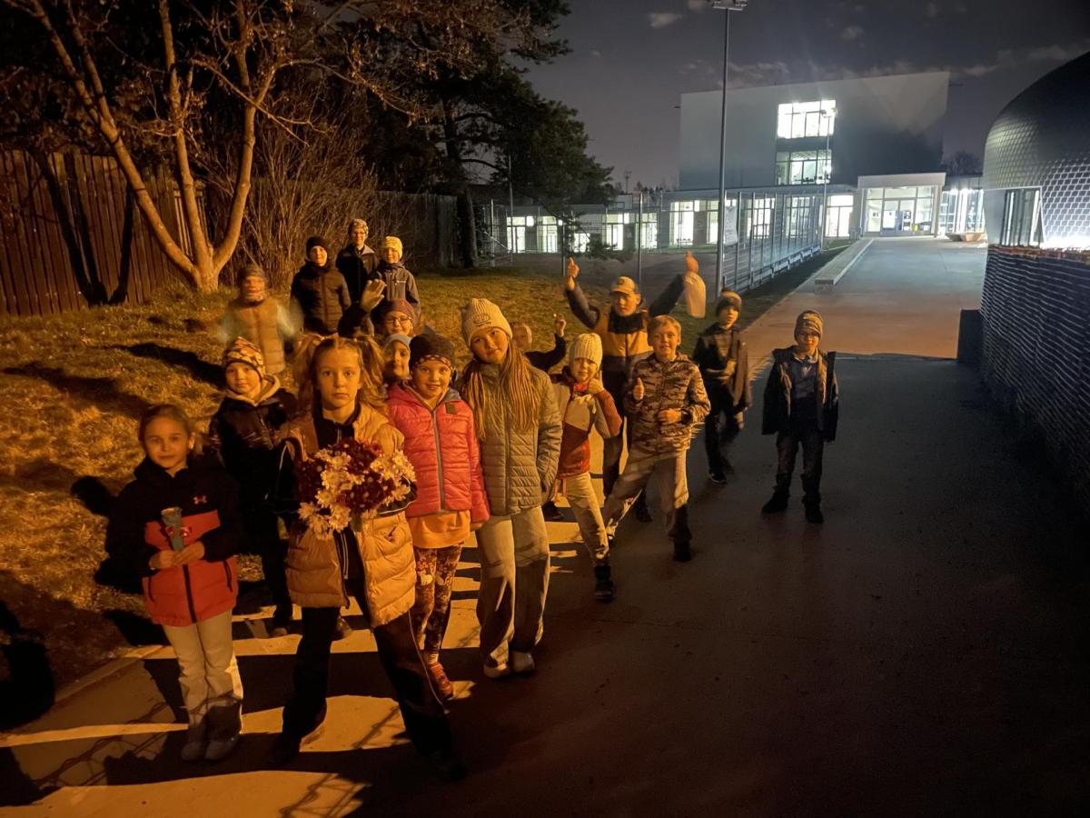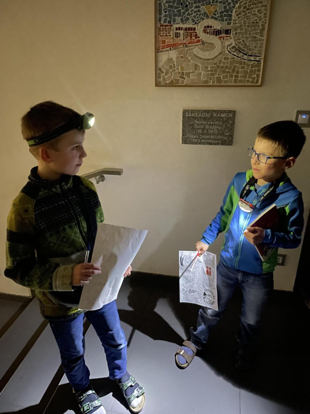 Kolem deváté hodiny večerní jsme se vrátili zpět do školy, kde na děti čekalo další dobrodružství. Po setmění se vydaly na bojovku – pouze s baterkami hledaly patnáct stanovišť rozmístěných po škole i jejím okolí. Úkoly plnily venku, v šatnách, jídelně i dalších prostorách školy. Vše zvládly s nadšením a velkou odvahou.