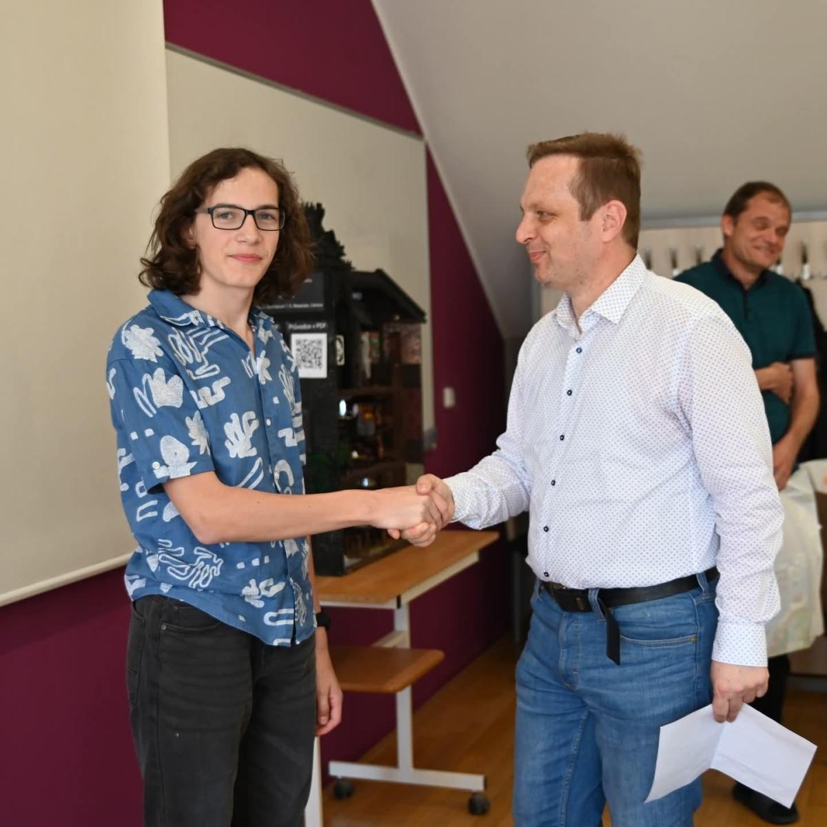 Ve čtvrtek 23. dubna se na půdě Přírodovědecké fakulty UK na pražském Albertově konalo finále Mapové soutěže, která je přidruženou soutěží ke geografické olympiádě. V této soutěži žáci prezentují své mapové výtvory, které v průběhu roku vytvořili. Odborná porota sestavená z kartografů, kteří vyučují předmět na půdě UK či ČVUT, nebo také členů Kartografie Praha, vybírala nejlepší mapy z více než 70 zaslaných. Ve finálové sedmičce, která prezentovala své výtvory prezenčně přímo na půdě fakulty obsadil skvělé 3. místo náš student sedmého ročníku - Jiří Kamenský s jeho mapou Žulovic. Odborná porota ocenila kartografickou kvalitu díla i jeho originalitu. Jirkovi moc děkujeme za reprezentaci školy a doufáme, že příští rok vyšle do soutěže další povedené kartografické dílo.