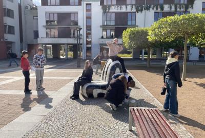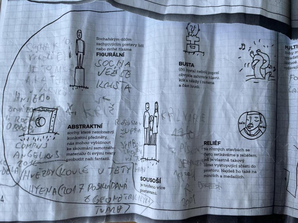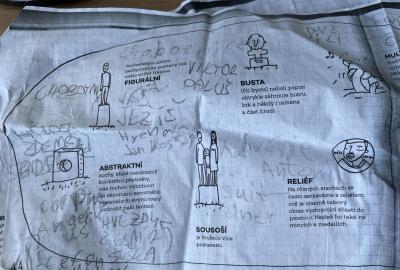Zajímavé informace o sochách se žáci dozvěděli přímo na místě. Zjistili, že za dvě vyučovací hodiny včetně přestávky, není možné celou dolnobřežanskou galerii pod širým nebem dostatečně prohlédnout. Svou spolupráci zaznamenali na pracovní listy z úžasné knihy "Ahoj socho: Městem s otevřenýma očima" od autorek M. Matysové a L. Štůlové Vobořilové, vydané GHMP 2018. "A proč jsou ve městě sochy?" jim pomohli pochopit dva významní sochaři ve stejnojmenném dokumentu ČT z cyklu Labyrint umění. Obojí je určeno spíše mladším dětem, ale sedmákům to nevadilo :-) Už se těší na vlastní tvorbu!