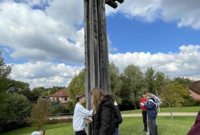 Sedmáci se před vlastní prostorovou tvorbou inspirovali sochaři a jejich díly umístěnými v Dolních Břežanech.