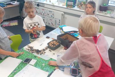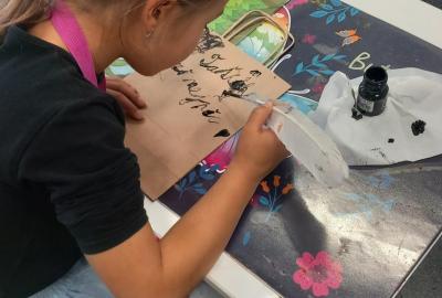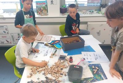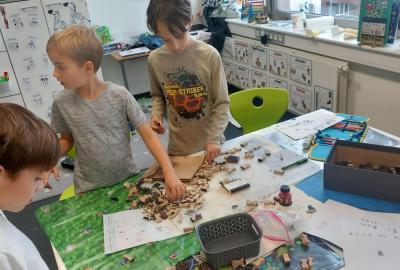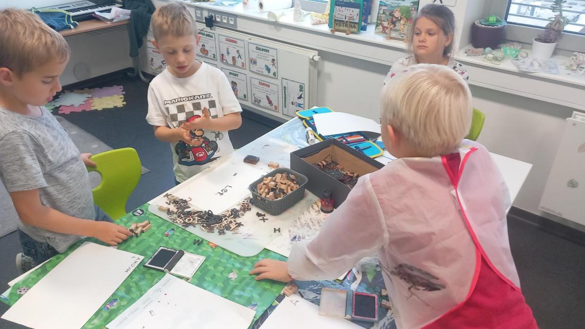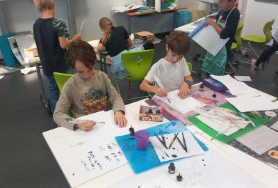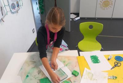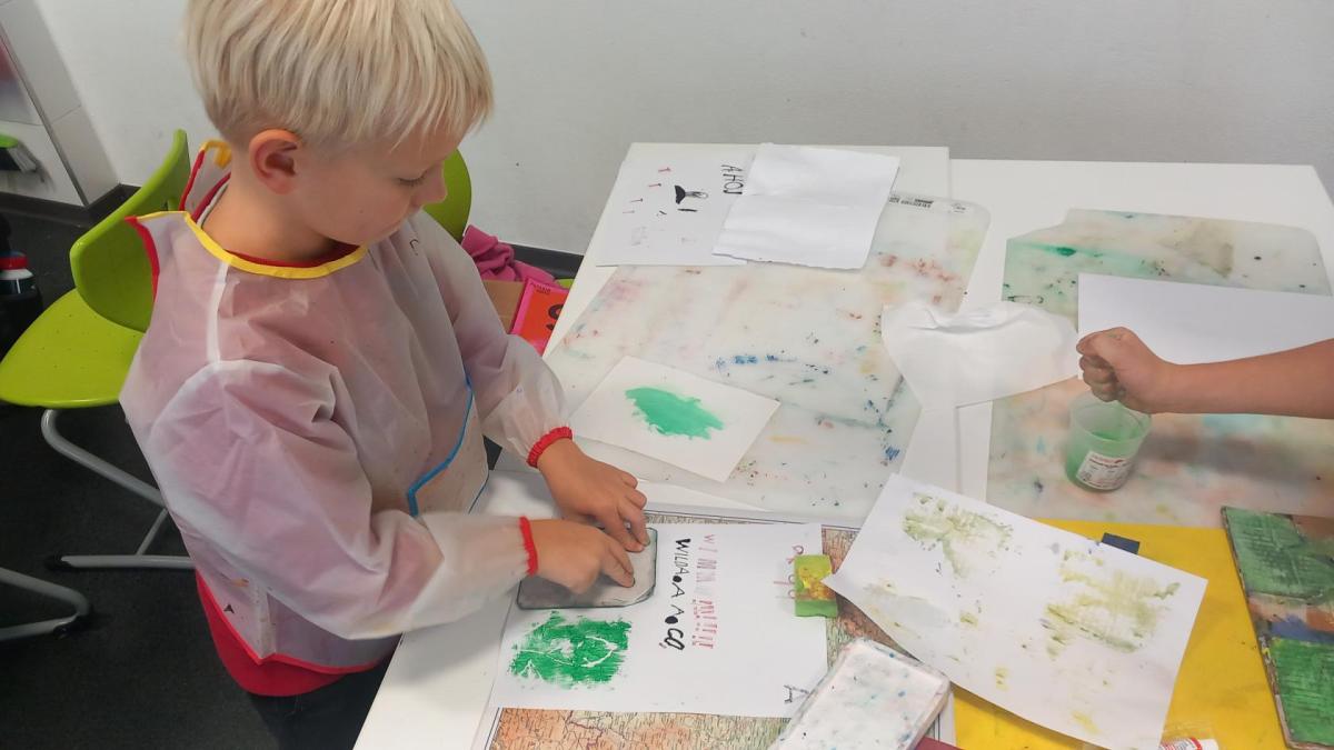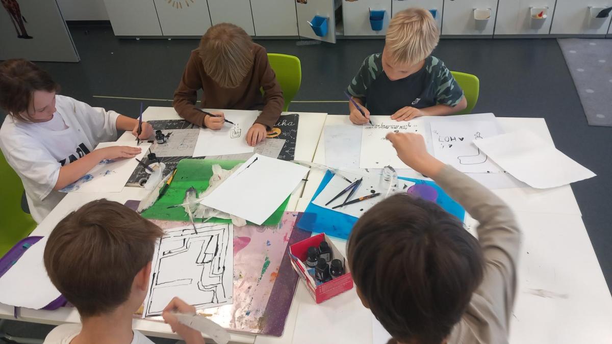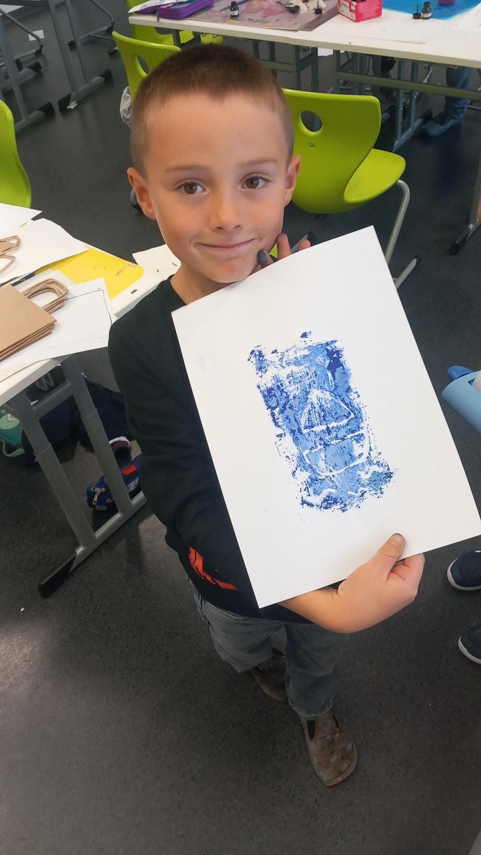 Měsíc jsme na projektové výuce probírali způsoby komunikace a vývoj písma od jeskynních maleb až po současné fungování offsetové tiskárny v závodech s metodou CMYK. Závěrečný workshop projektu měl u dětí velký úspěch. Rozdělili jsme si třídu na několik stanovišť, kde bylo možné si vyzkoušet různé metody písma, psacích nástrojů a tiskařských technik. Jak se psalo písařům na hradě, jak to měl Gutenberg vychytané a co nám přinesla moderní technika? Jaké tiskařské metody máme dnes a jak se asi psalo našim babičkám a dědečkům ve škole? To vše jsme si vyzkoušeli a vytvořili si malé dárečky. Jen ten úklid :D