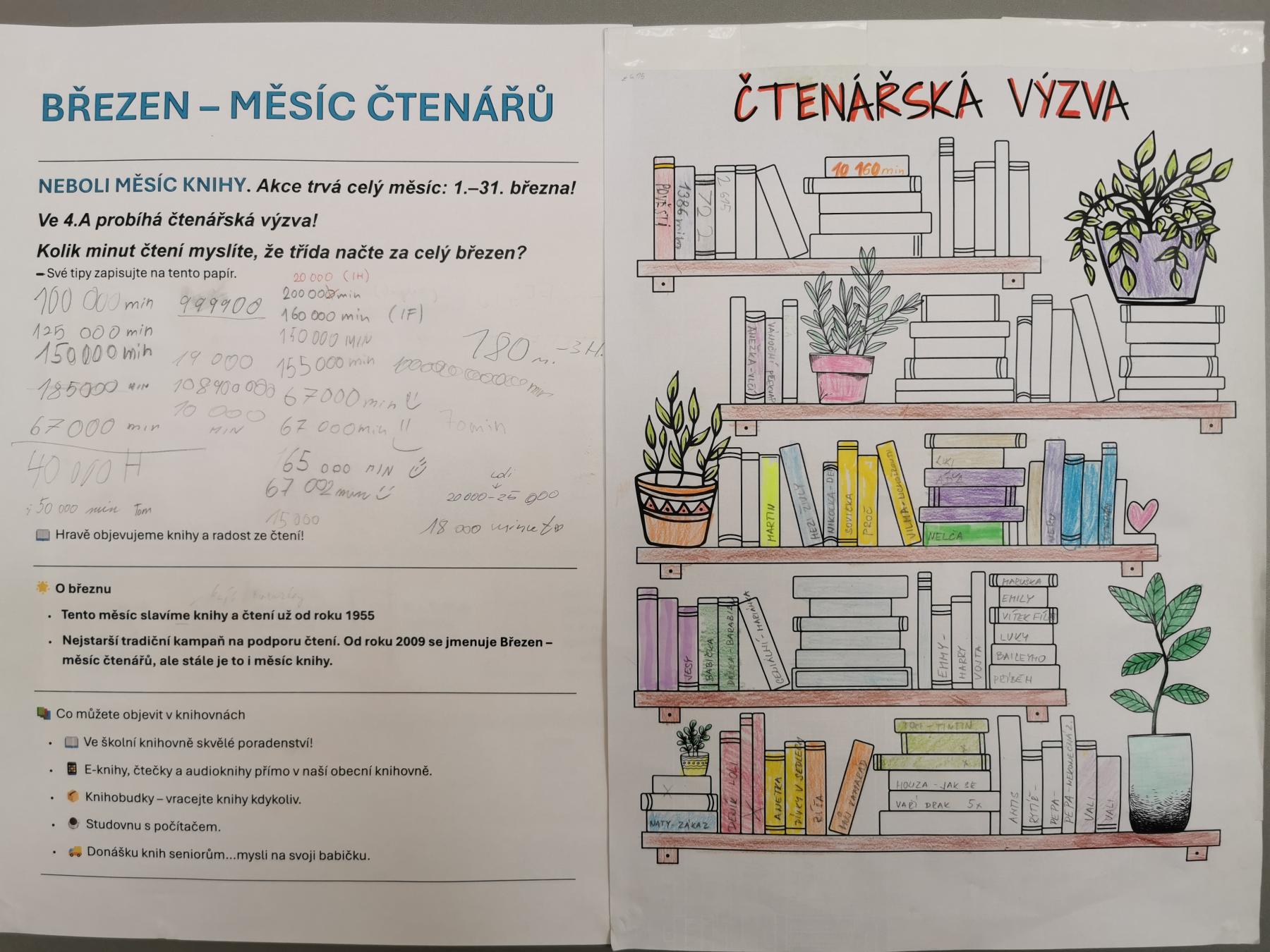 Celá třída 4.A načetla za měsíc březen 10 200 minut.