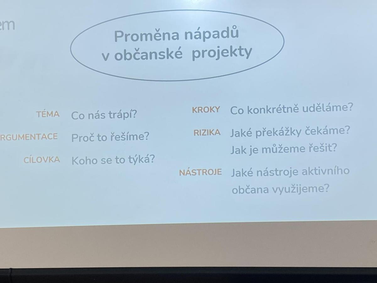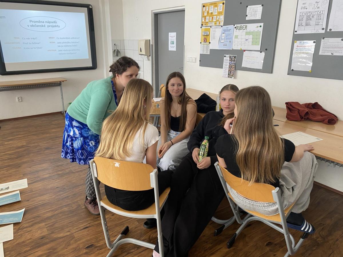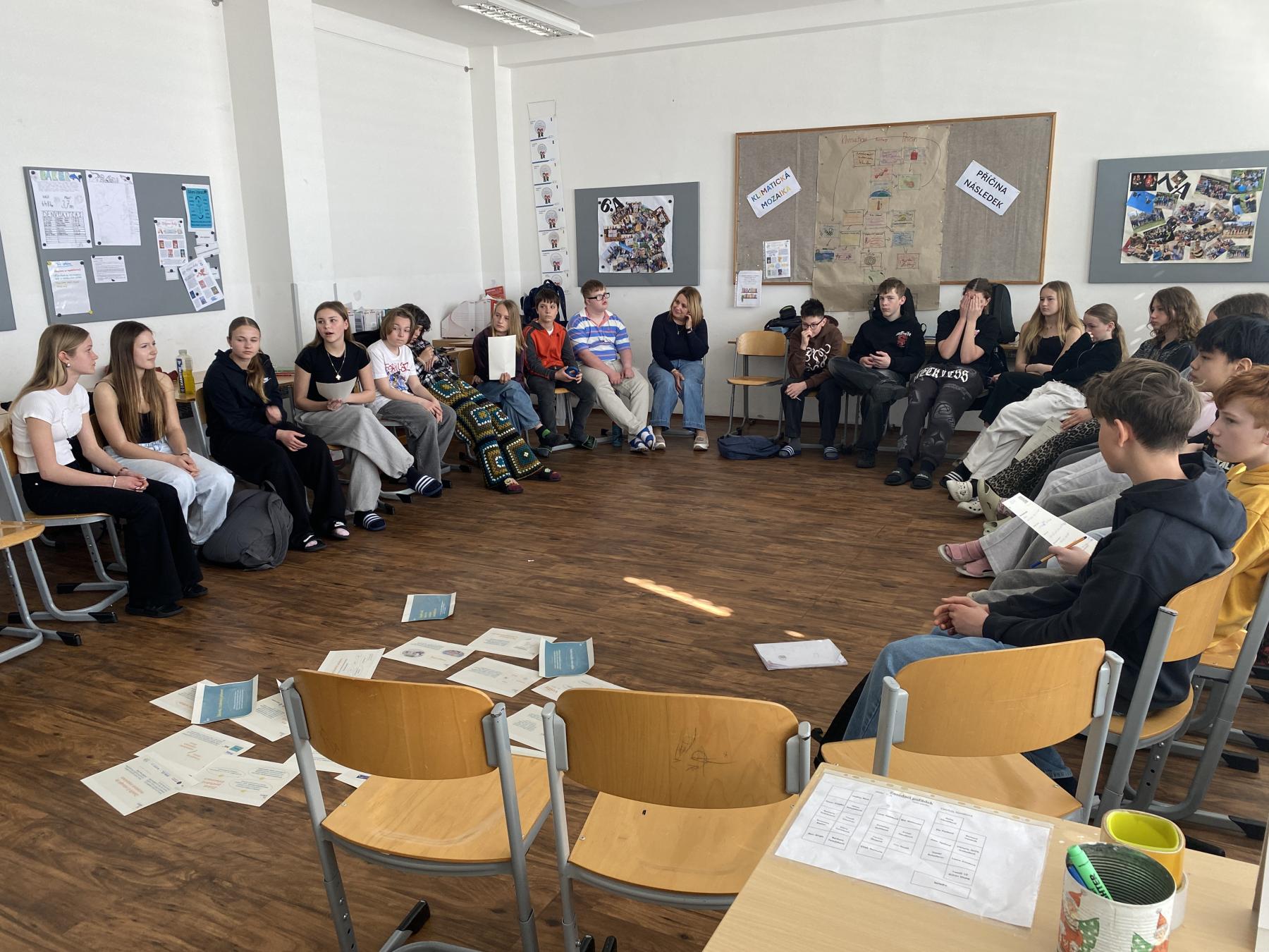 Na závěr setkání žáci přemýšleli nad konkrétními kroky, které by mohli sami podniknout, aby se právě jejich „problém“ vyřešil.