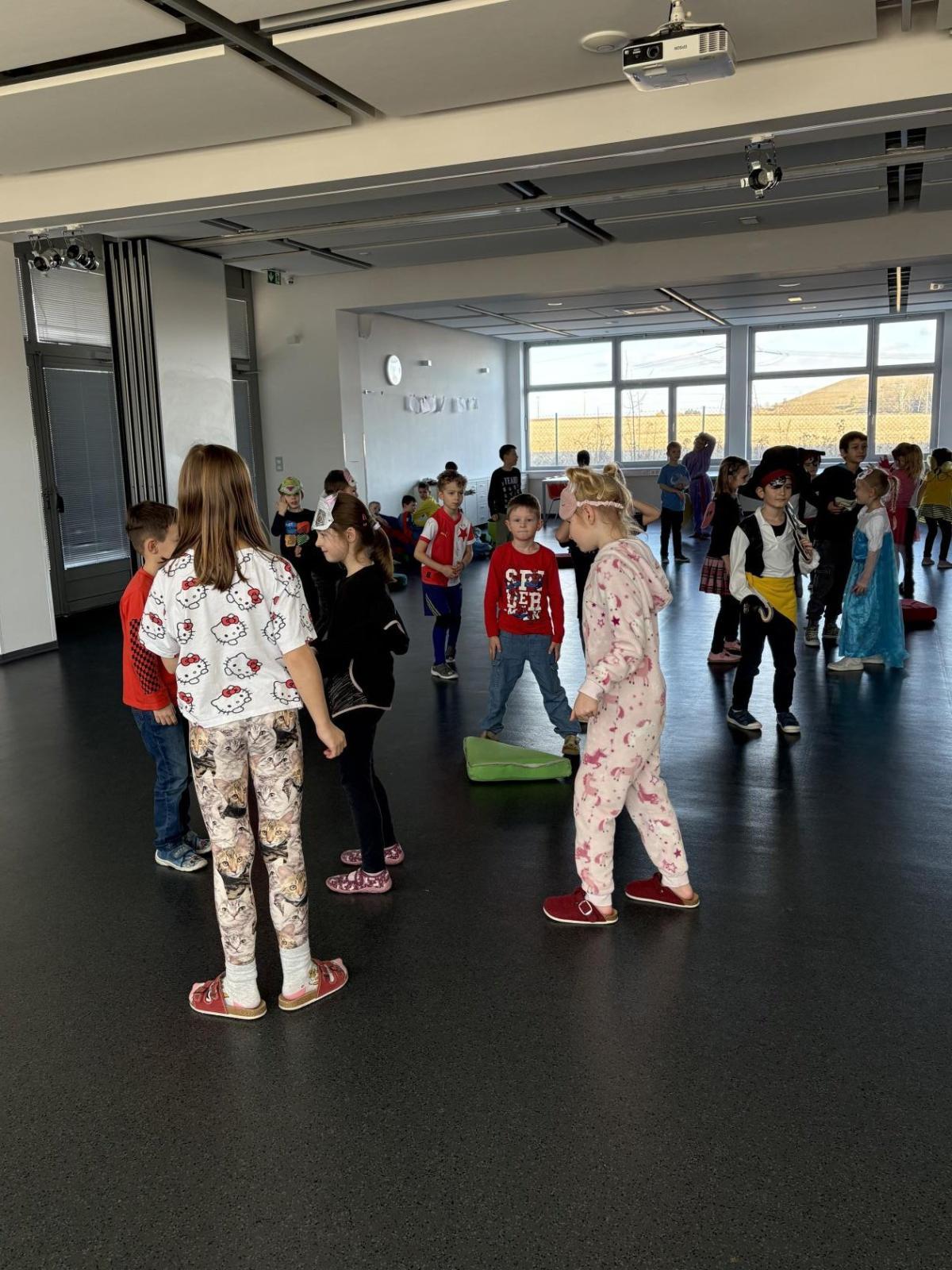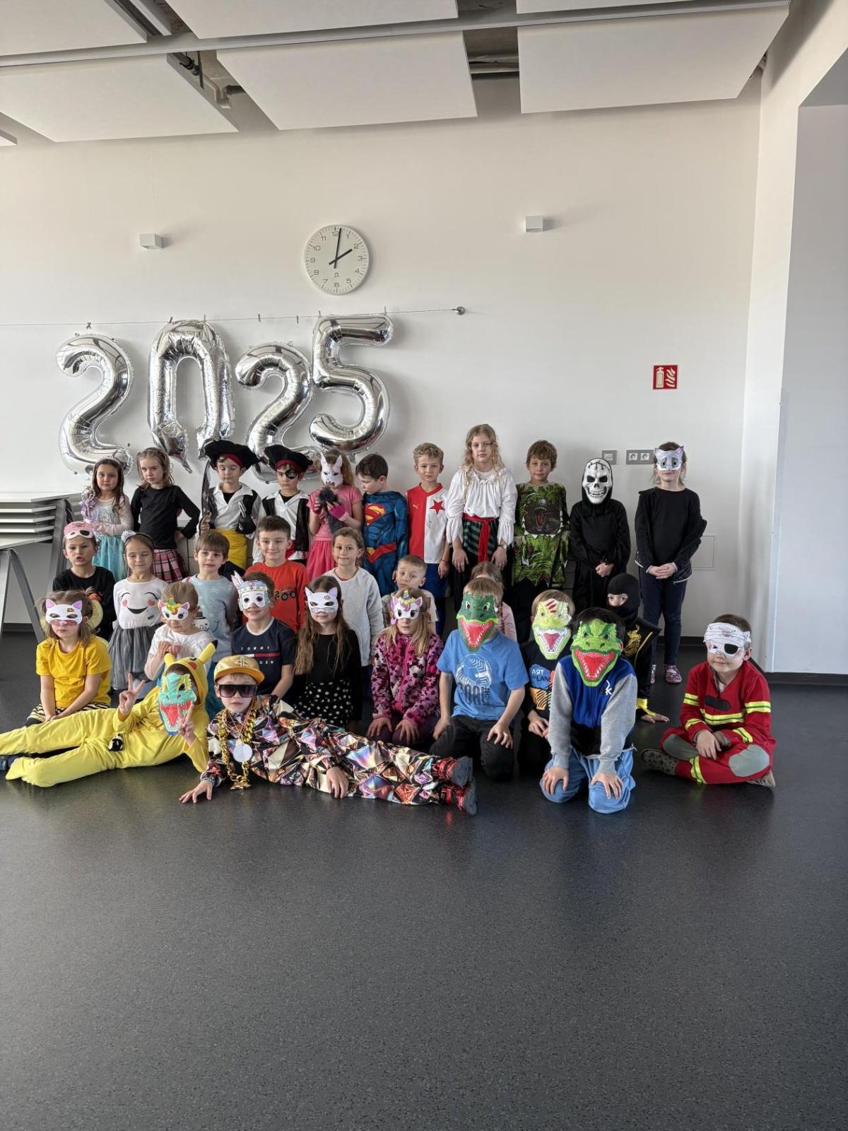 Družinového karnevalu se účastnily děti z 1.A, 1.B, 1.C a 4.A. Kostýmy byly různé od pokémonů přes princezny až dokonce po slavné osobnosti, mezi něž patří například Rytmus z 1.B. Přivítání na karnevalu dostali i mýtičtí a legendární tvorové, jako jsou draci a jednorožci.