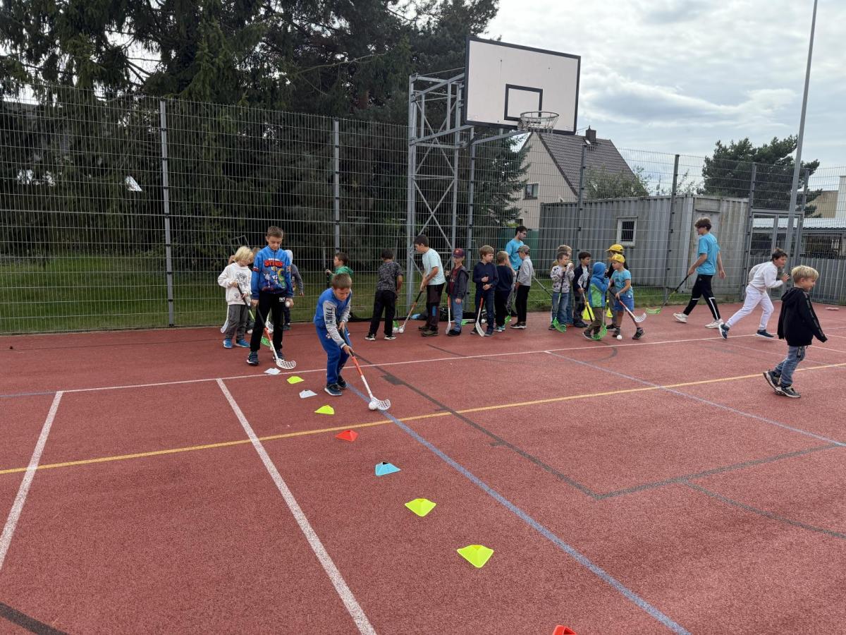 Dne 17. září se družinové děti zúčastnily ukázky sportovních aktivit, která se konala na školním hřišti a byla uspořádána společností Sport Academy. Děti si mohly vyzkoušet hod míčem do koše, florbal a skákání přes švihadlo. Všechny tyto aktivity přinesly dětem spoustu zábavy a radosti.