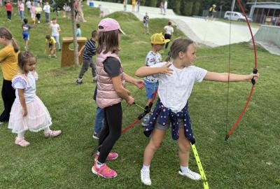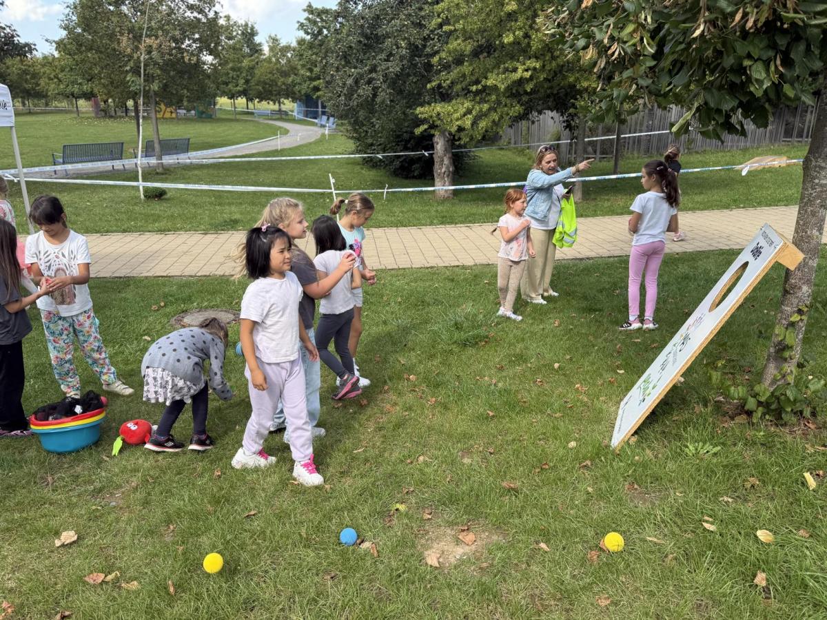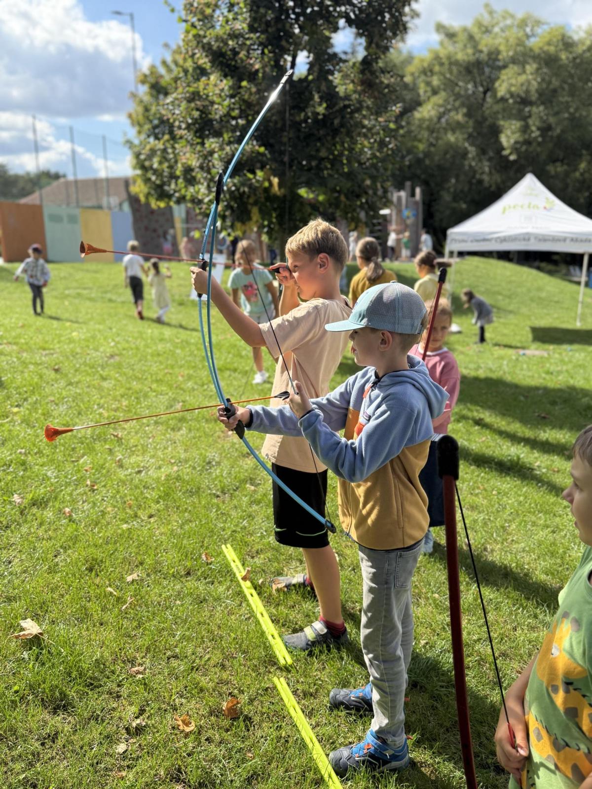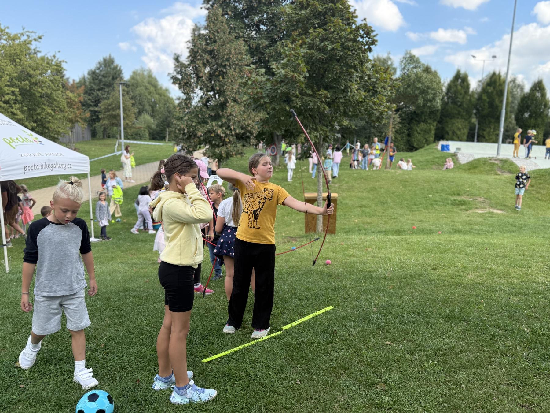 Na začátku děti proběhly vytyčenou trasu a poté si mohly vyzkoušet různé dovednostní aktivity, jako například hod míčem do koše, střelbu z luku a hod míčem na určený cíl. Počasí nám přálo, a tak si děti den opravdu užily. Za svou účast získaly všechny děti sladkou odměnu.