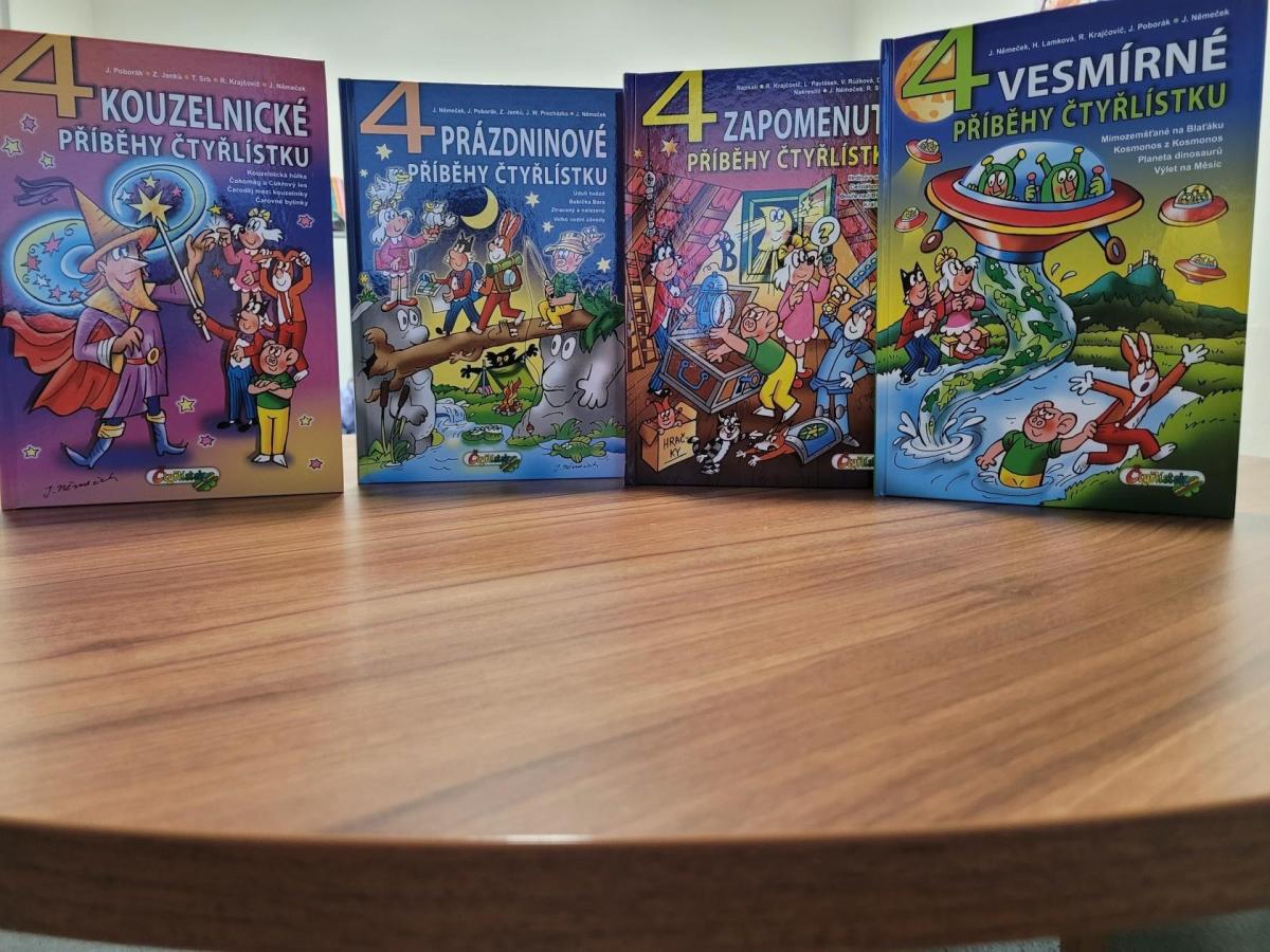 Naše knihovna nenabízí jen knihy, ale také časopisy. Mezi těmi vede v oblíbenosti jednoznačně Čtyřlístek, který si pravidelně chodí číst mladší i starší čtenáři. A protože všechna čísla, která máme, už skalní příznivci Myšpulína, Bobíka, Pindi a Fifinky znají nazpaměť, rozhodli jsme se jim udělat radost a zakoupit pro ně další dva kompletní ročníky časopisu. A aby toho nebylo málo, přidali jsme k tomu ještě čtyři knížky, z nichž každá obsahuje další čtyři komiksové příběhy Čtyřlístku. Věříme, že tolik nových příběhů všem milovníkům této party pěkně dlouho vydrží.
