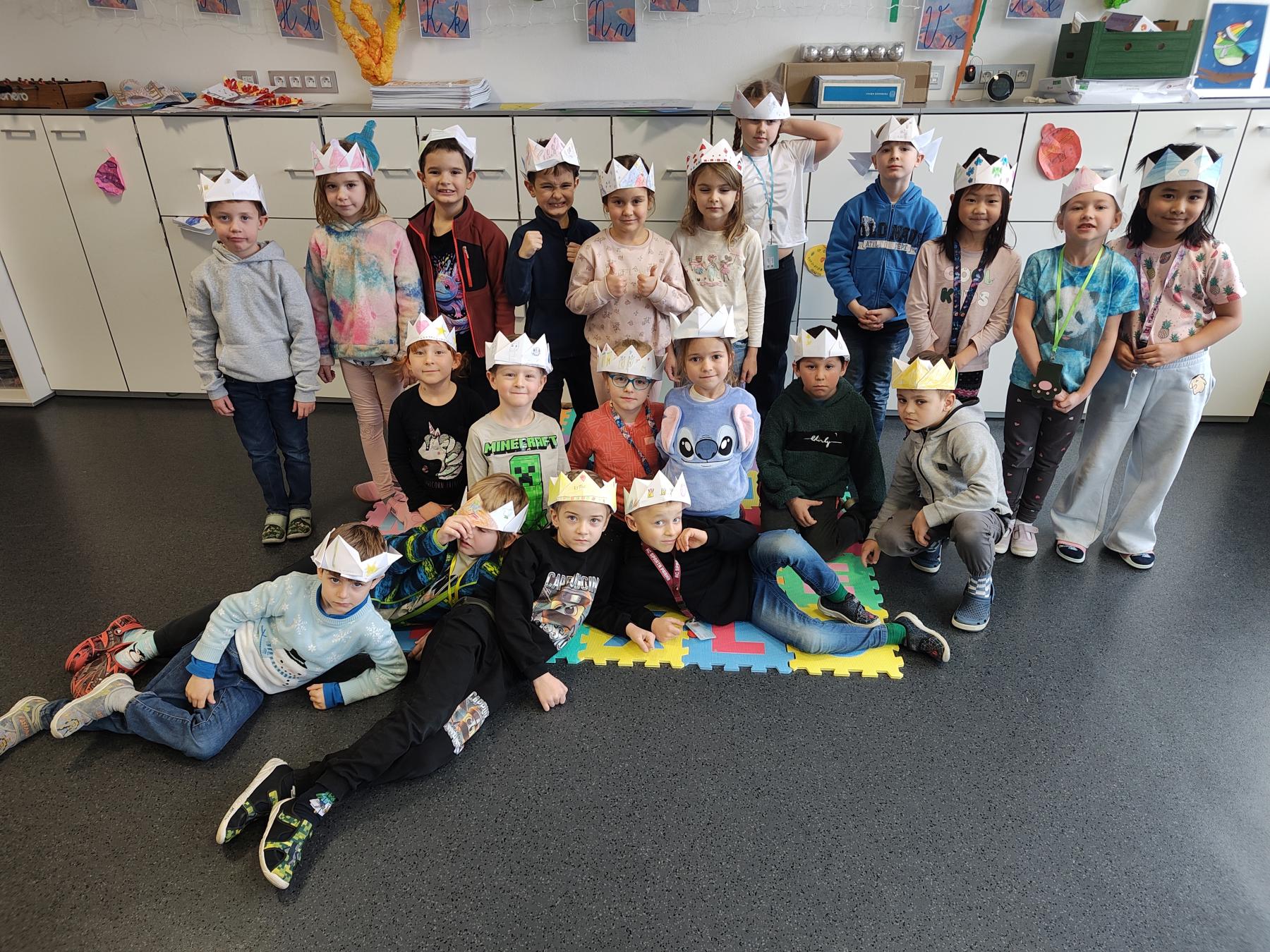 Po vánočních prázdninách jsme se ve třídě znovu sešli odpočatí, plní zážitků a radosti ze společného setkání. Děti měly mnoho dojmů, o které se chtěly podělit, a s chutí se pustily zpět do práce i do poznávání nových věcí. V matematice jsme se zaměřili na psaní číslice 7. V českém jazyce jsme začali pracovat s novým písmenem „n“, které jsme dále upevňovali i v hodinách čtení; zároveň jsme se začali seznamovat s písmenem „z“. V rámci tématu svátku Tří králů jsme si povídali o jejich příběhu a děti si k tomu vyrobily vlastní královské koruny. V tělesné výchově jsme začali trénovat chůzi po kladině. Děti tato činnost velmi baví a každou hodinou získávají více jistoty i odvahy. Po prázdninách se všichni rychle naladili zpět na školní režim a s radostí objevují nové dovednosti i poznatky, které je v nejbližší době čekají.