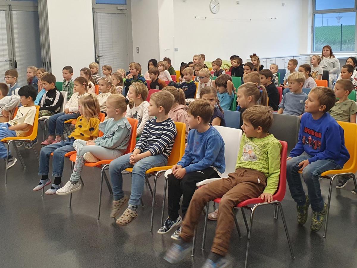 Prvňáčci zhlédli scénické čtení podle knihy Jiřího Trnky.