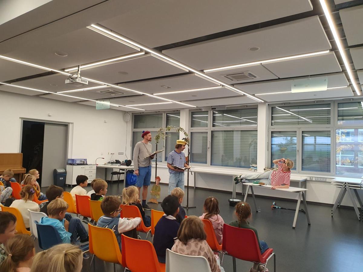 V pátek 17. října nás v sále školy navštívil divadelní soubor projektu Listování se scénickým čtením inspirovaným knihou Zahrada od Jiřího Trnky. Herci dětem poutavě přiblížili příběh a svým vystoupením vytvořili příjemnou náladu plnou fantazie. Děti pozorně sledovaly dění na jevišti a nechaly se vtáhnout do kouzelného světa knihy. Představení se všem líbilo a přineslo krásné propojení literatury s divadlem.