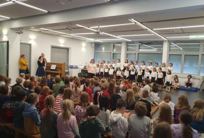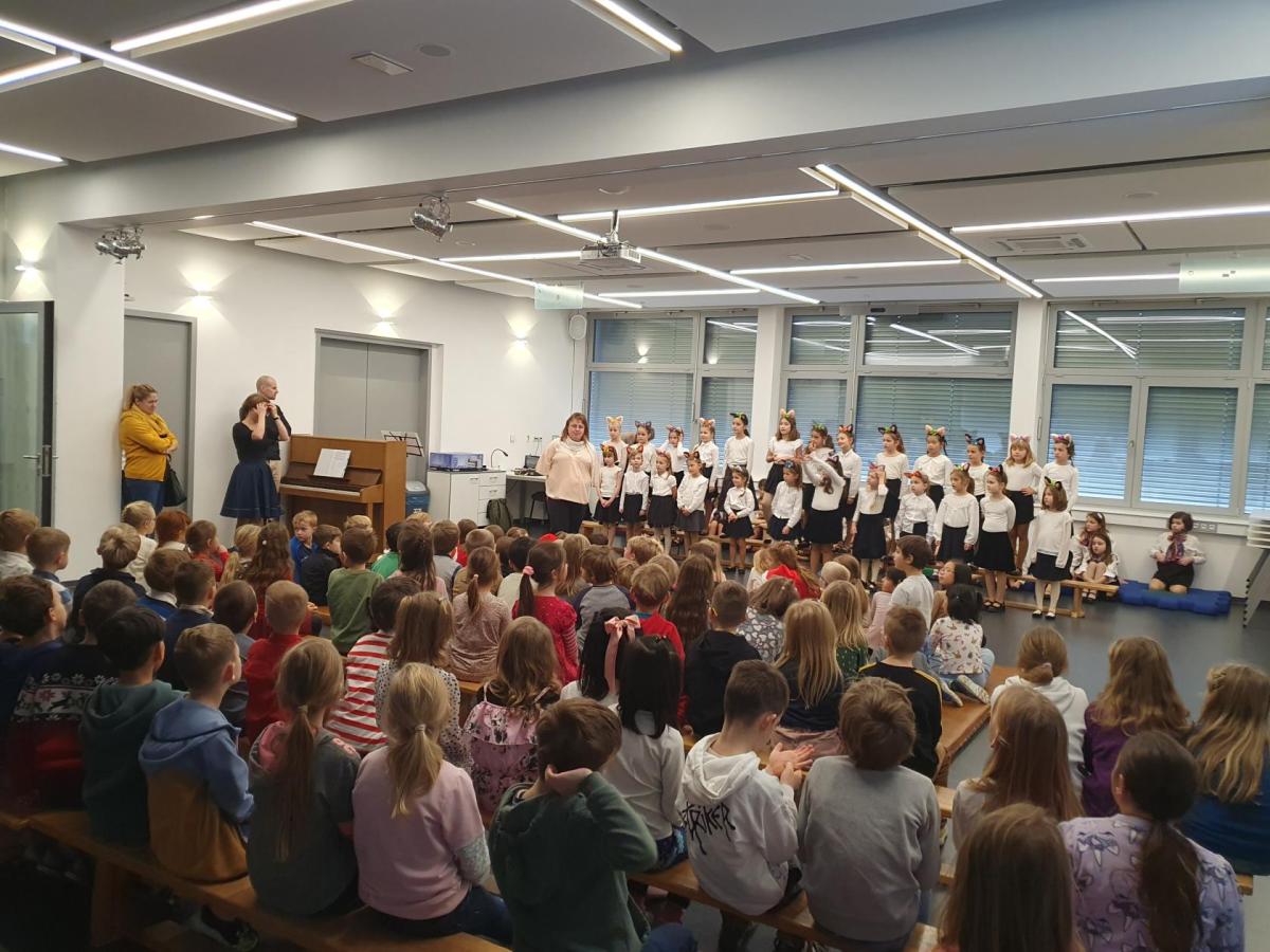 Do naší školy zavítal dětský pěvecký sbor Radost Praha při ZUŠ v Praze 7. Přibližně padesát talentovaných dětí, rozdělených do dvou oddělení – mladší Koťata a starší Písnička, připravilo pestrý program plný písní a vánočních koled. Každé oddělení vedly zkušené sbormistryně Jana Palasová a Cecílie Pirnerová, které dětem dodaly jistotu i radost ze zpěvu. Na klavír je citlivě doprovodil Vladimír Kopáčik, jehož hra dodala vystoupení krásný hudební rámec. Atmosféra koncertu byla slavnostní a zároveň velmi přátelská – děti rozdávaly úsměvy a hudba spojovala všechny přítomné. Tento zážitek nám připomněl, jak důležitá je síla umění v každodenním životě.