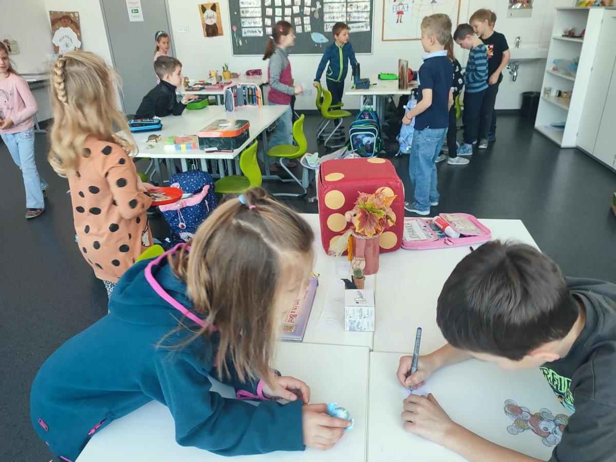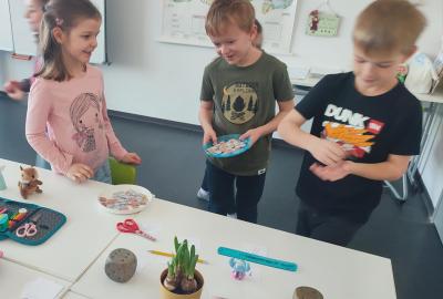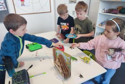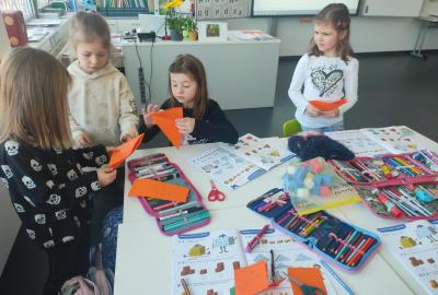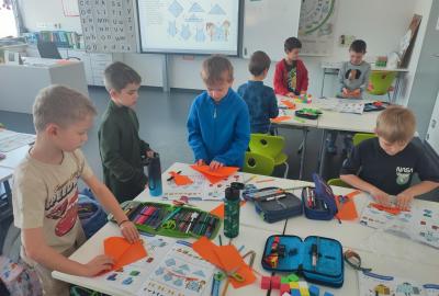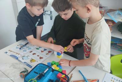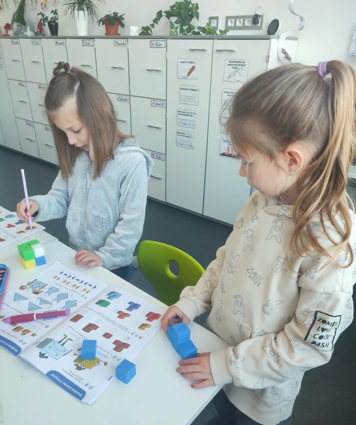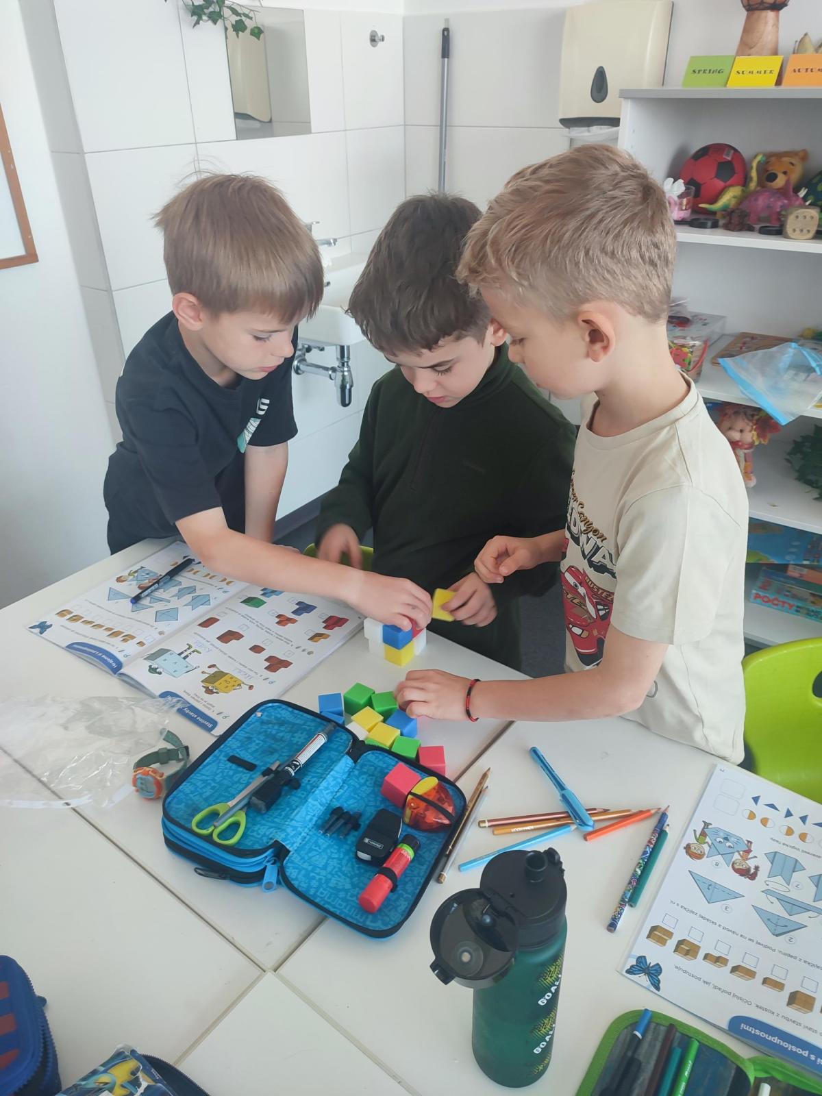 Také skládáme s papíru podle návodu, což trénuje naši pozornost a představivost. A samozřejmě řešíme zajímavé úkoly, u kterých můžeme přemýšlet, spolupracovat a hledat nová řešení.