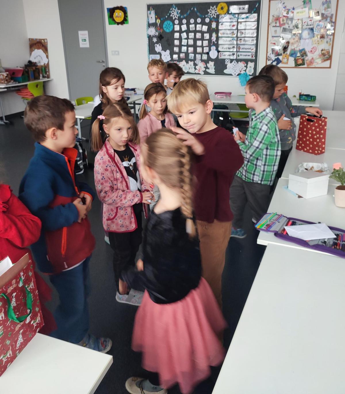 Malé ruce rozdávaly dárečky, ale nejen ty zabalené v barevném papíru. Děti si darovaly úsměvy, objetí a přátelství.