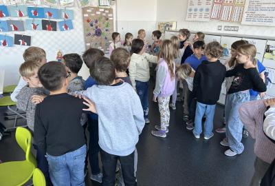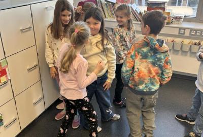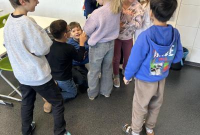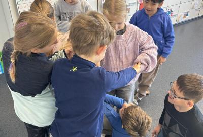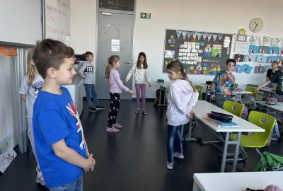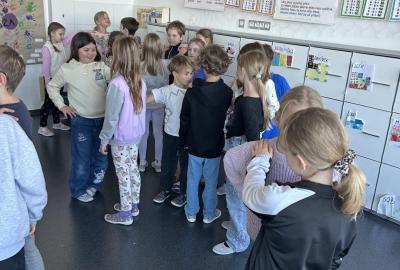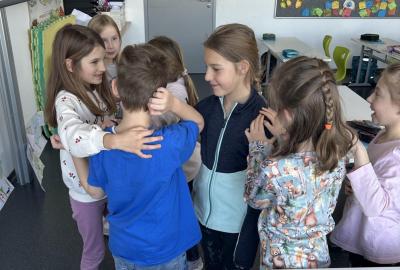 Fungování v kolektivu jsme si pak vyzkoušeli v aktivitě „Uzel“. Část dětí měla za úkol se zaplést. Úkolem dětí - rozplétačů - bylo uzle společně rozmotat. Aktivitu jsme ukončili závěrem, že bez spolupráce to nejde, někdy musíme ustoupit a není důležité být vždy nejrychlejší, ale být ohleduplný k ostatním.