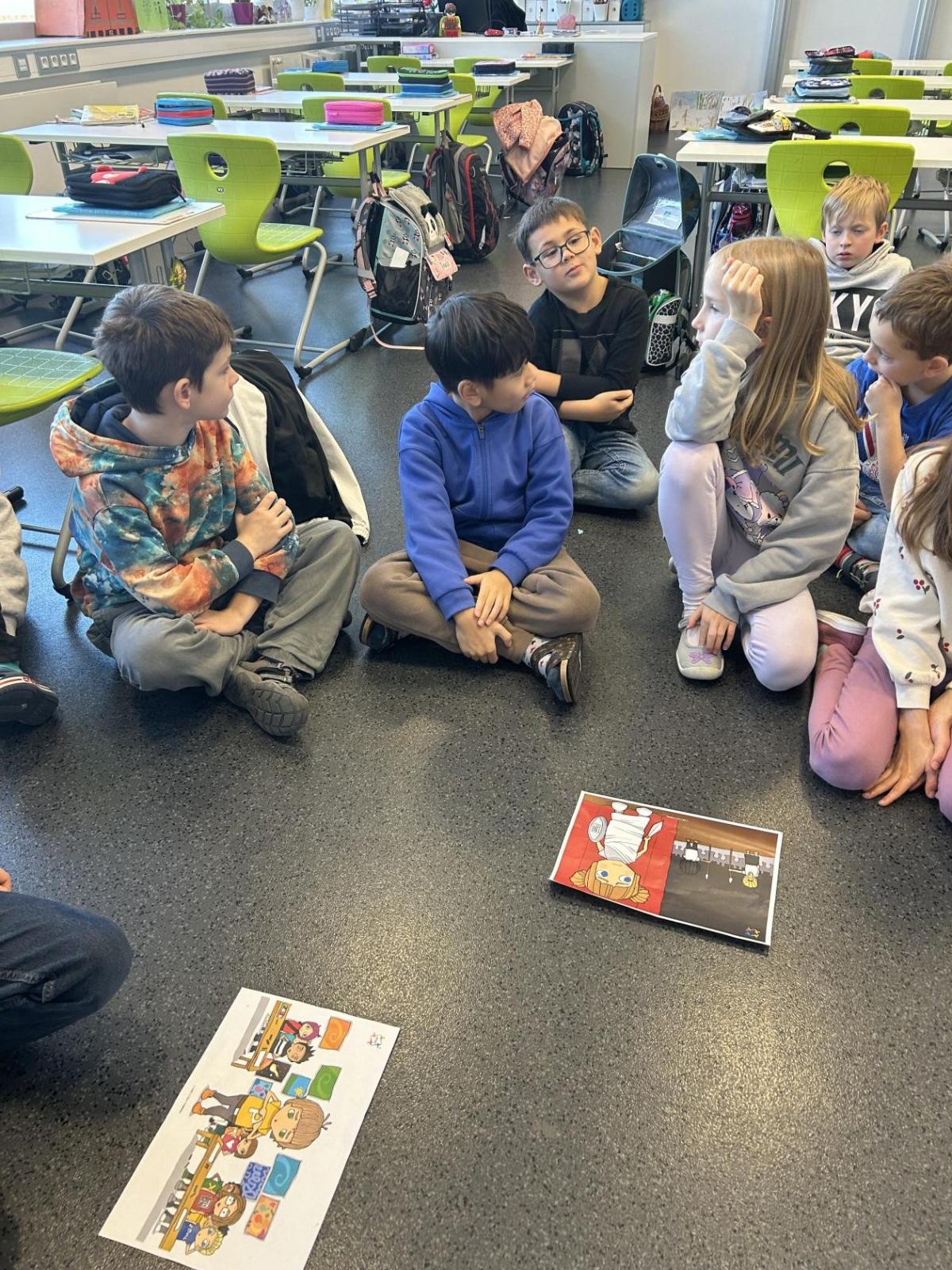 Nejprve jsme se vrátili k předchozí KiVa lekci. Povídali jsme si o emocích – jak je poznáme, jak se projevují a proč jsou důležité. Děti sdílely, kdy se během posledních dní setkaly s nějakou výraznou emocí, jak ji u jiných poznaly nebo se svou vlastní pracovaly.