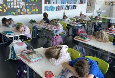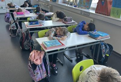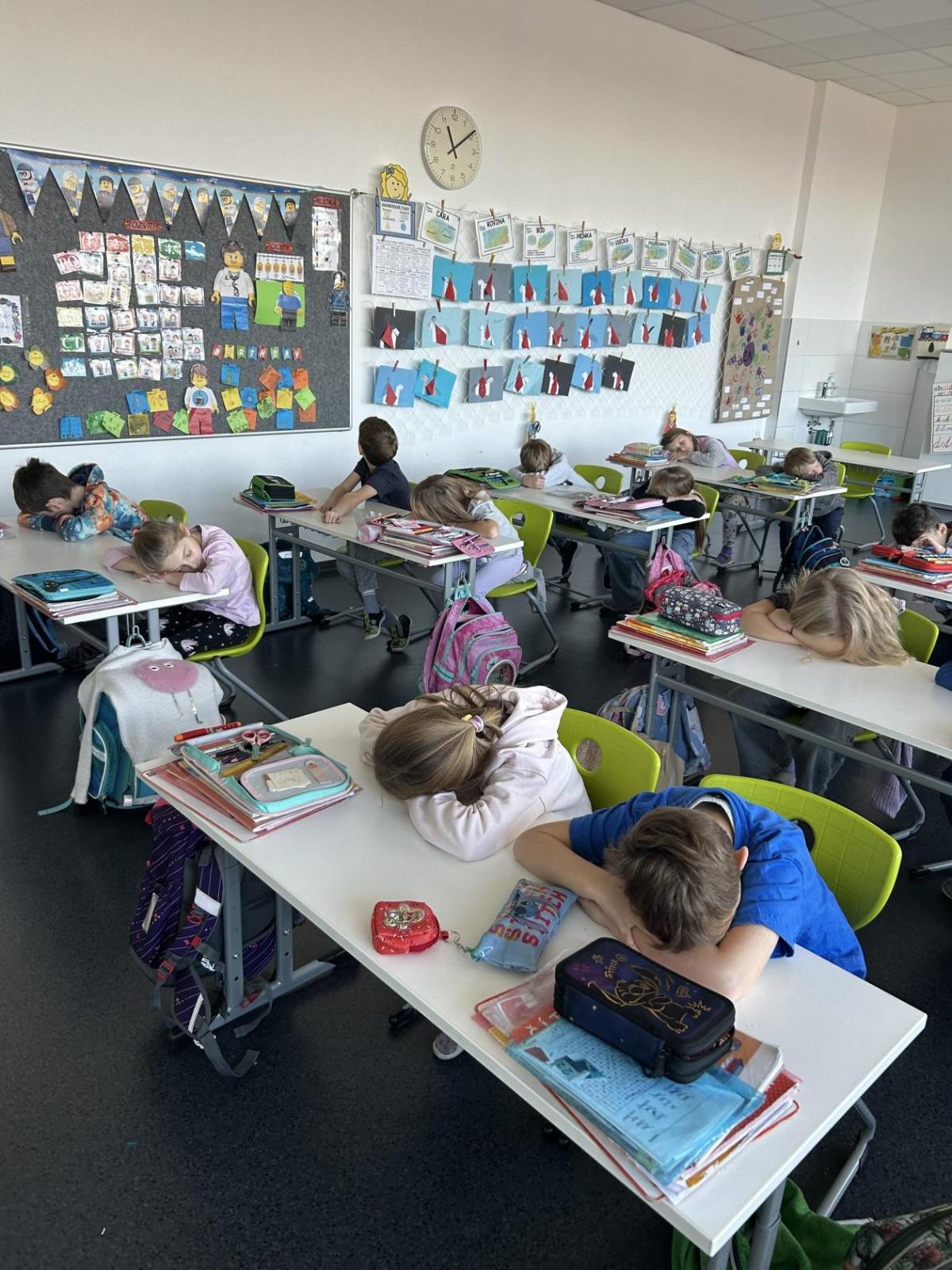Na závěr jsme položili hlavičky na stůl, zavřeli oči a představili si přátelskou třídu, kde se každý cítí bezpečně, přijatě a vítaně.