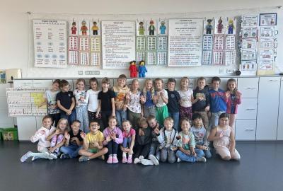 Velkou novinkou je, že se k nám připojili dva noví spolužáci – Felix a Sofinka. Oba mezi nás krásně zapadli a dnes už je naše třída 2.A v plném složení: 27 dětí, dva maskoti a paní učitelky.