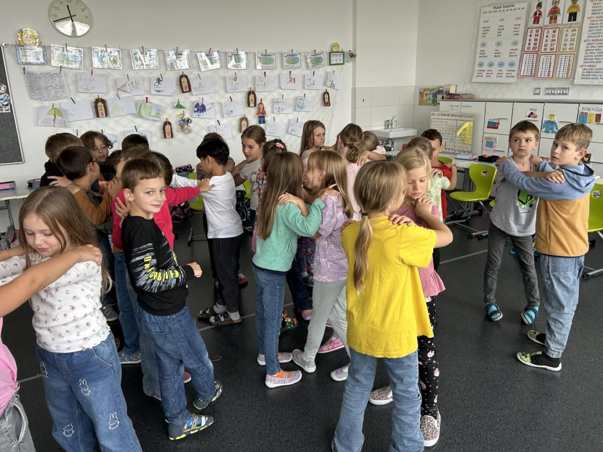 V další části jsme se snažili poznat lépe spolužáky, se kterými se ještě tolik neznáme. Žáčci si povídali o svých zájmech a hledali tím nové věci, které mají společné.