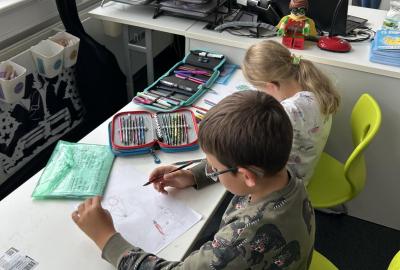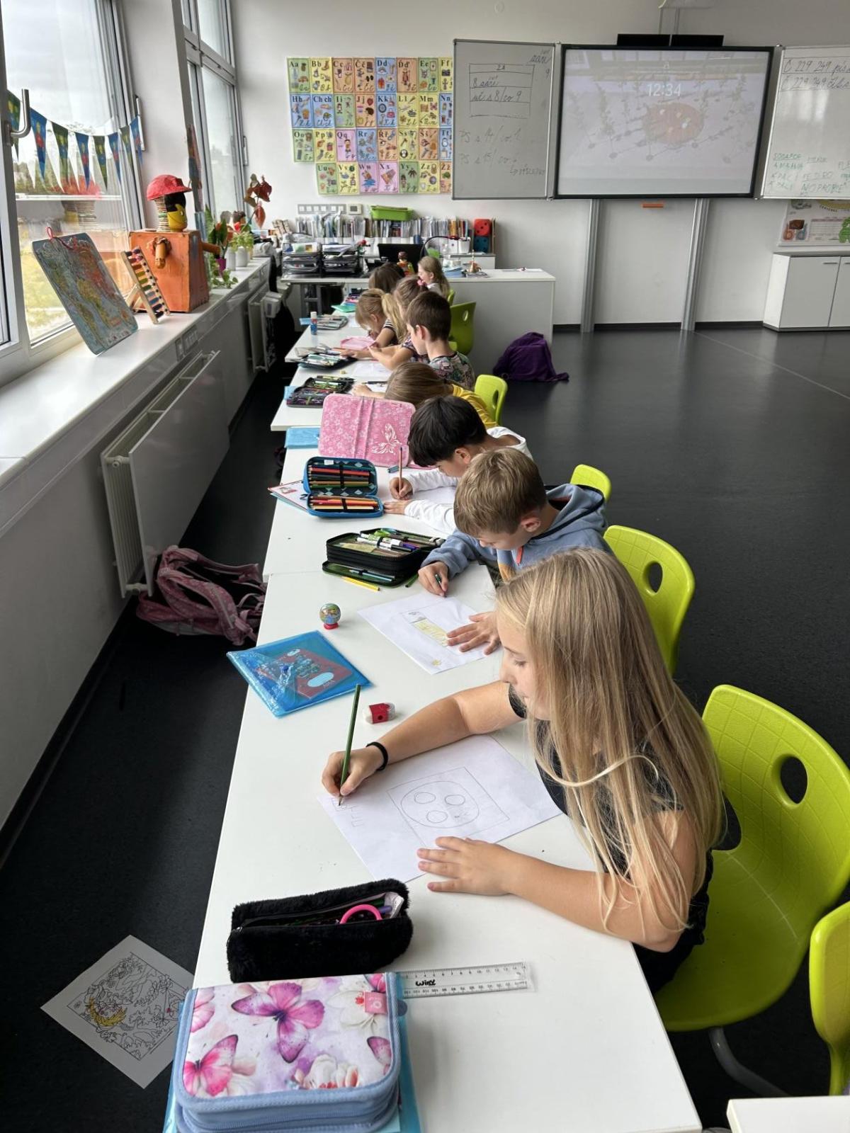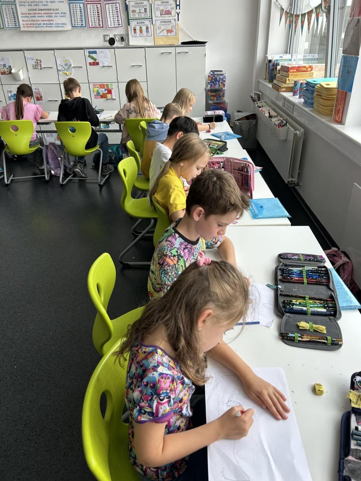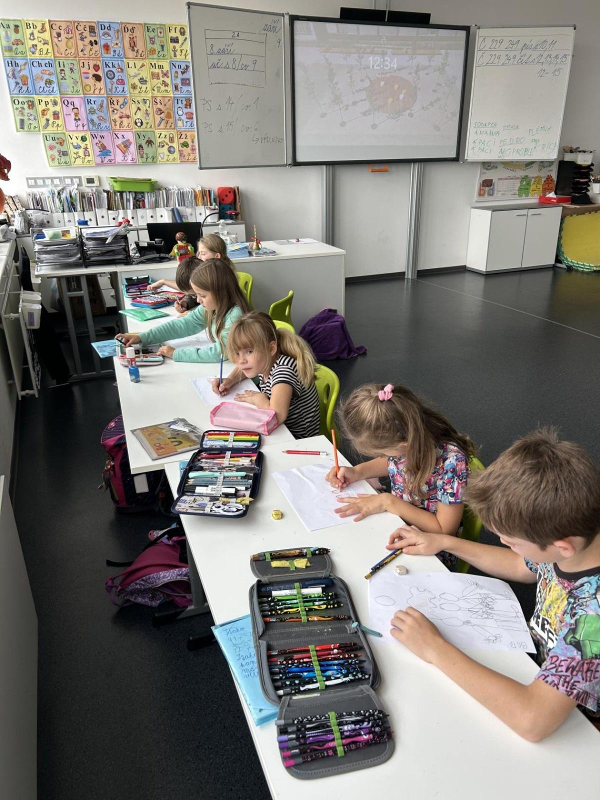 Na závěr jsme zavřeli oči a vyslechli příběh o jedné přátelské škole, kde se žáci cítili bezpečně a rádi tam chodili. Poté měl každý možnost namalovat svou vlastní „bezpečnou školu“ – obrázky ukázaly, jak děti vnímají naši třídu a co je pro ně důležité, aby se cítily dobře.