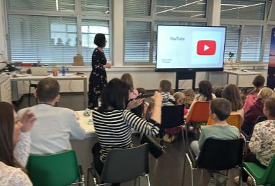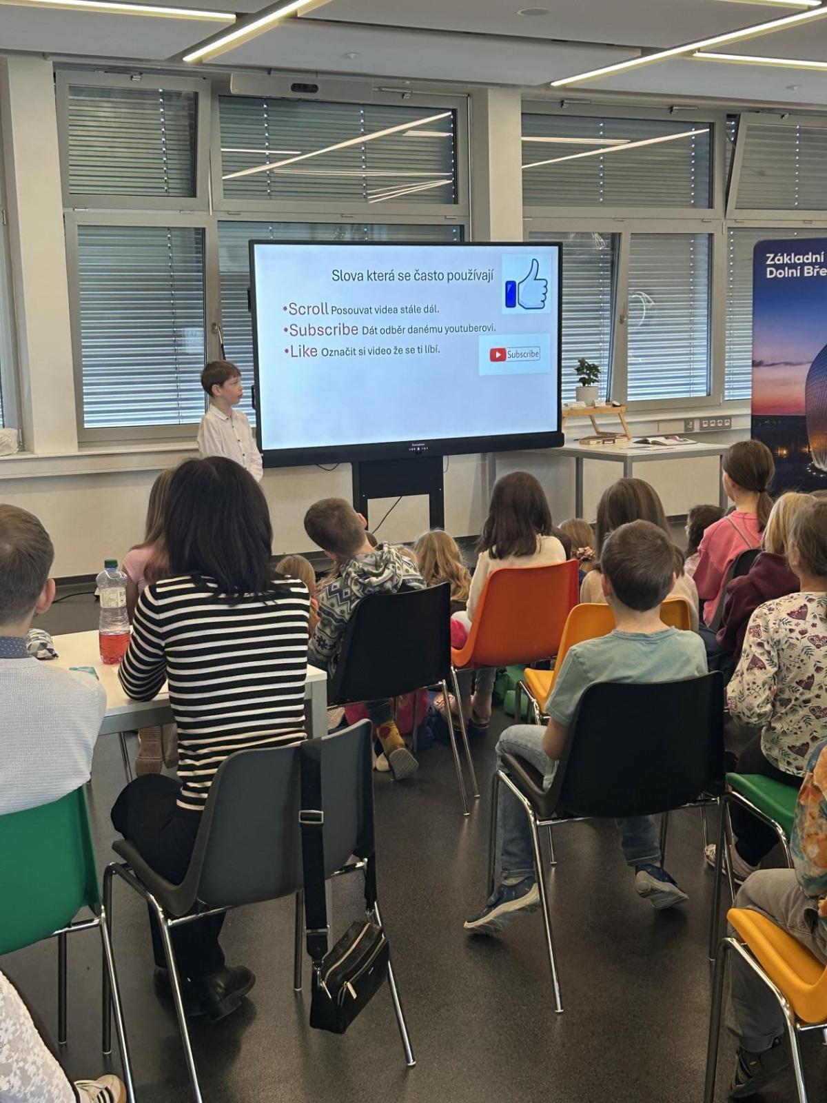 První prezentace byla věnovaná YouTube. Dozvěděli jsme se, jak tato platforma funguje, co znamená sledovanost a jak vznikají videa, zejména ta herní, která jsou mezi dětmi velmi oblíbená.