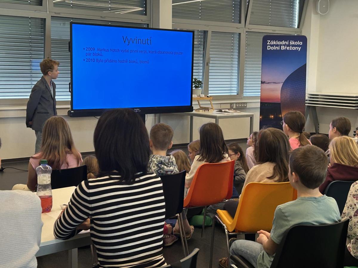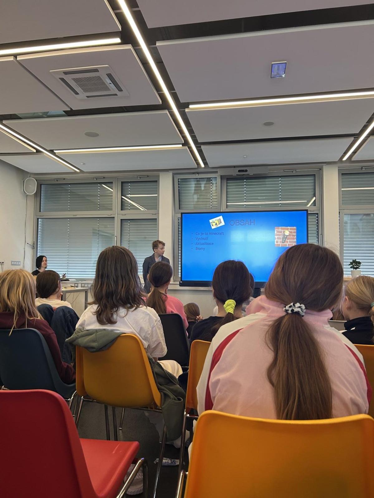 Druhé téma patřilo hře Minecraft. Děti se zaujetím sledovaly vysvětlení, jak hra funguje, jaké postavy se v ní objevují a co všechno v jejím světě lze zažít.