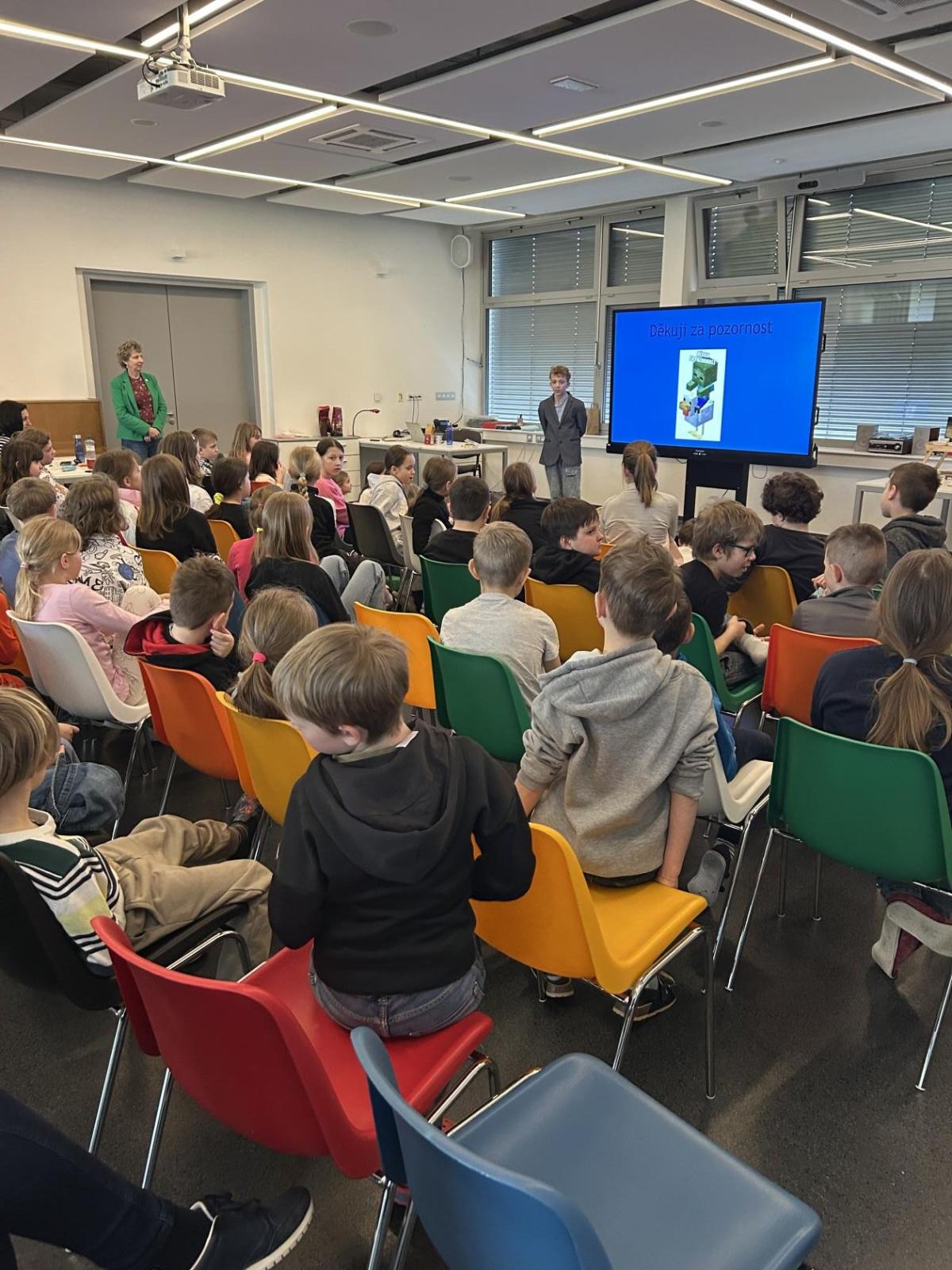 Vyrazili jsme se podívat na projektovou olympiádu starších žáků. Čekaly nás zajímavé prezentace na různá témata – od her až po vědu.