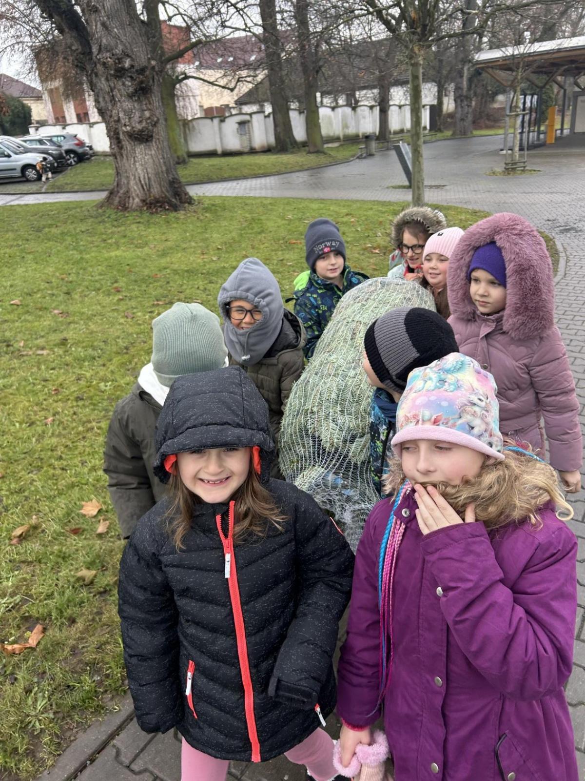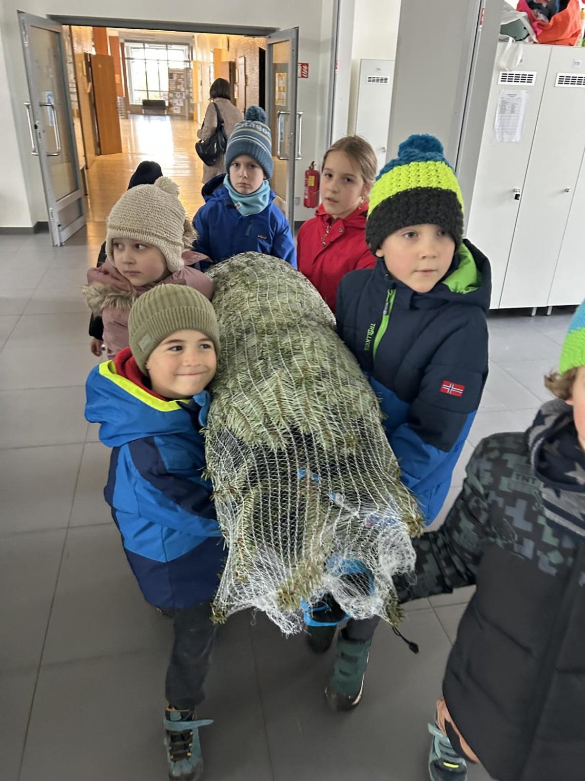 Pondělí 1. prosince jsme si s žáčky zpříjemnili procházkou po Dolních Břežanech, během které jsme se vydali pro náš třídní živý vánoční stromeček. U velmi milých prodejců, kteří nás přivítali úsměvem a malou čokoládkou pro každého, jsme si vybrali krásný, velký stromek. Jakmile byl zabalený, vyfotili jsme se v obležení dalších jehličnanů. Cestou zpět si děti ve skupinkách hrdě náš náklad a s nadšením nesly.