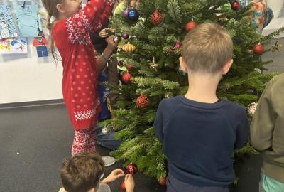 Ve škole nám pan školník usadil stromeček do stojánku. Poté přišla ta nejhezčí část – zdobení. Druháčci si přinesli vánoční ozdoby, společně si vyrobili papírový řetěz a paní učitelka přinesla bezdrátové barevné svíčky. Pak už u nás ve třídě svítil nádherně ozdobený vánoční stromek a hned bylo znát, že Vánoce se opravdu blíží.