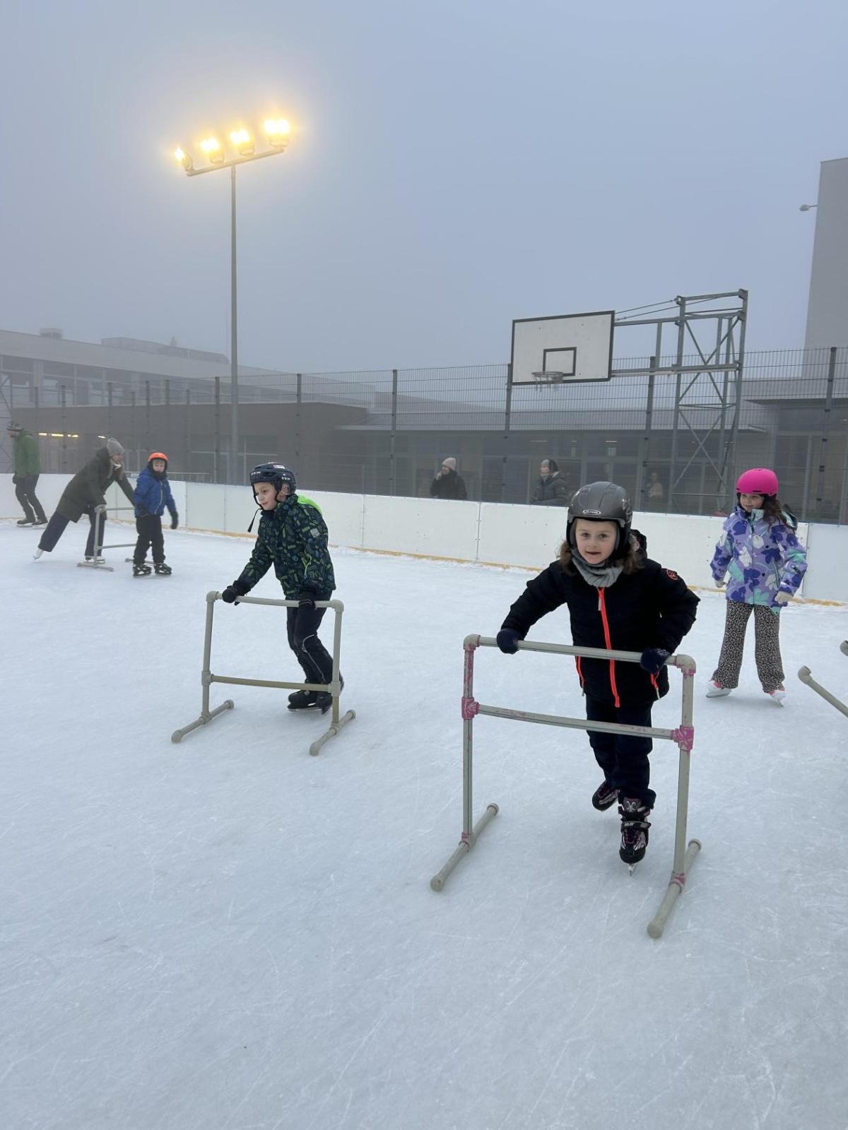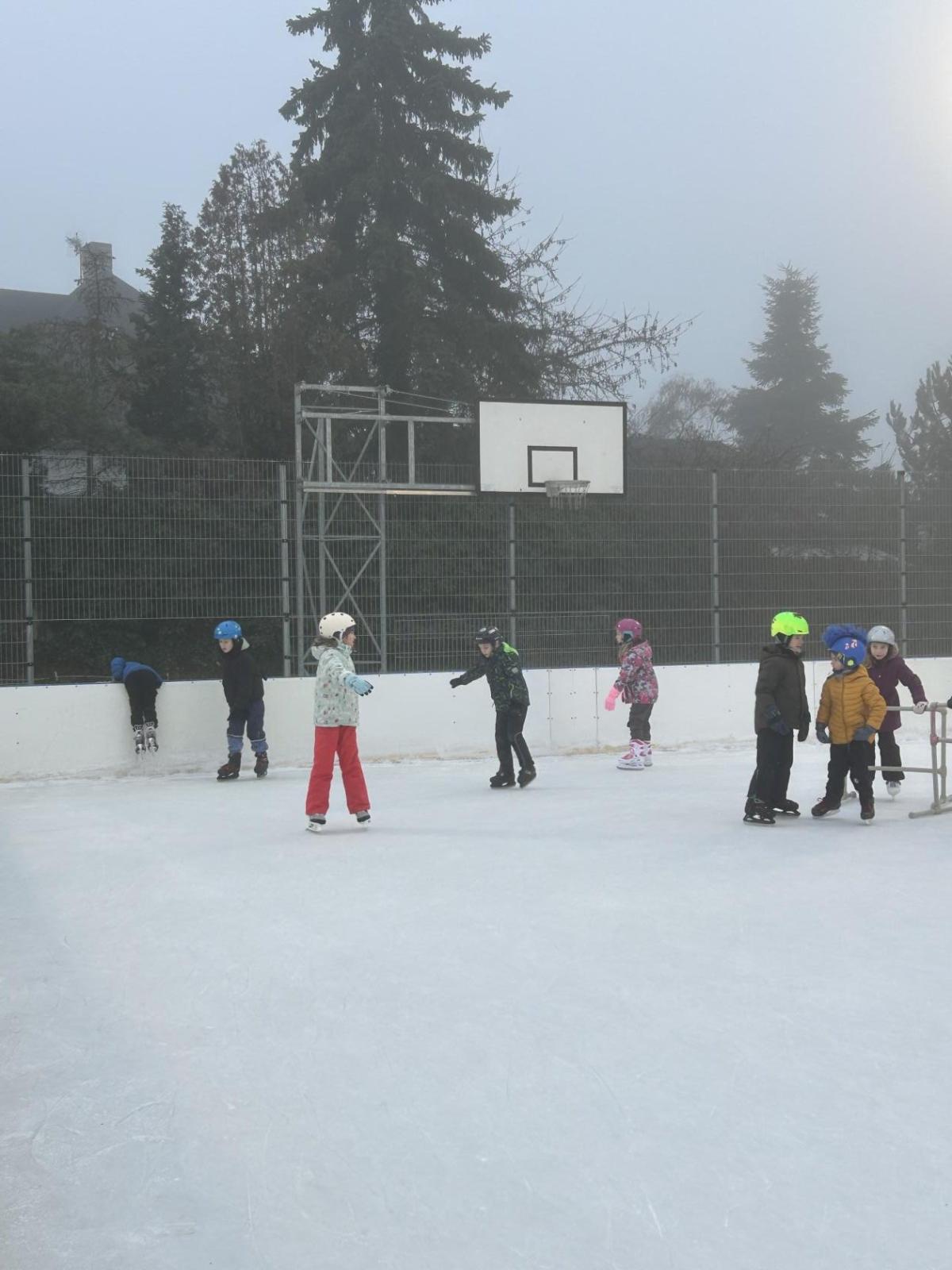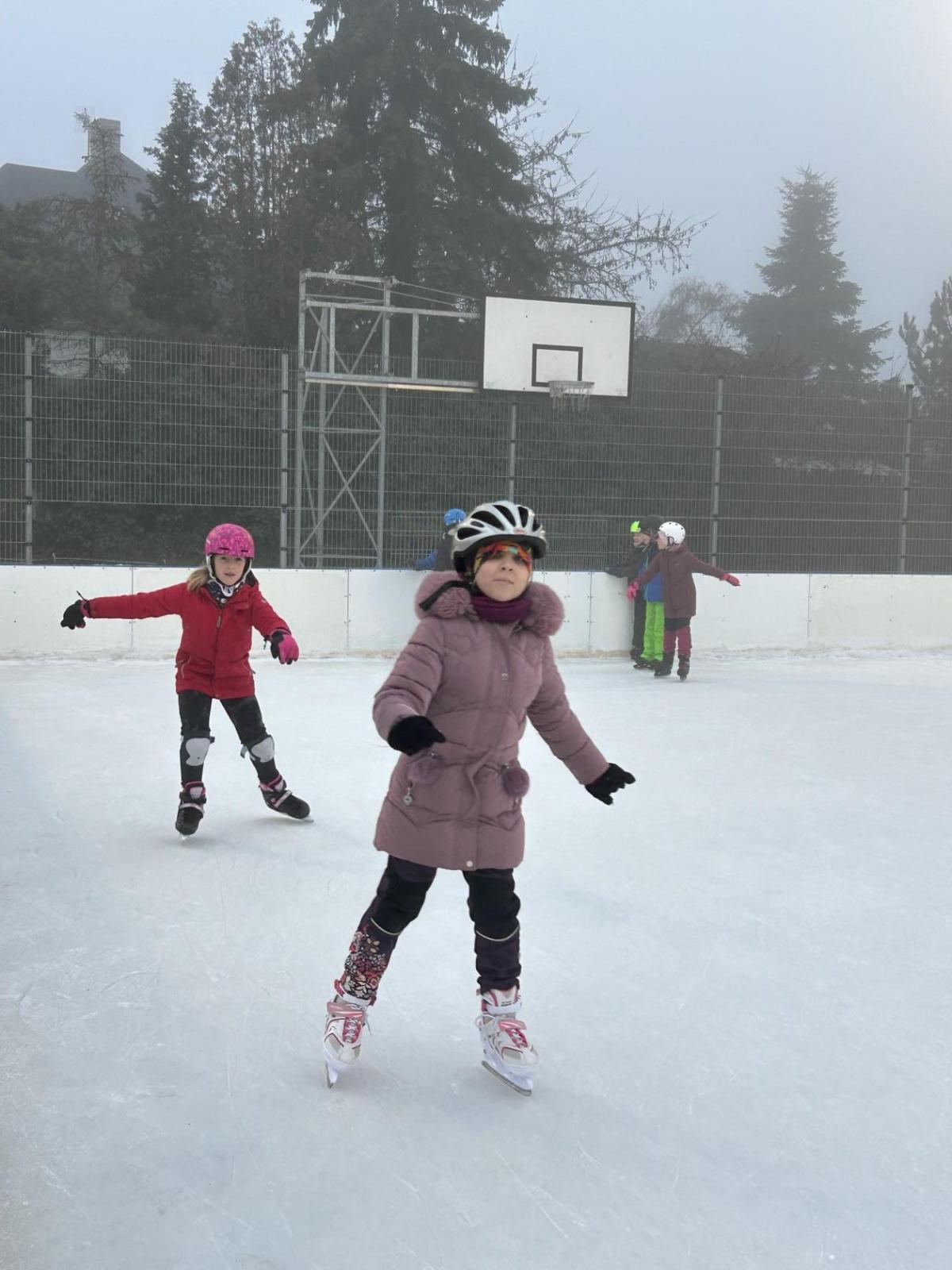 V prosinci se nám před školou objevila krásná novinka – přímo na školním hřišti vznikla ledová plocha, která je dopoledne vyhrazená dětem naší školy a odpoledne otevřená veřejnosti. Přestože mají druháci letos v rámci tělesné výchovy plavání, domluvili jsme se, že si bruslení rozhodně nenecháme ujít a několikrát si ho společně vyzkoušíme.