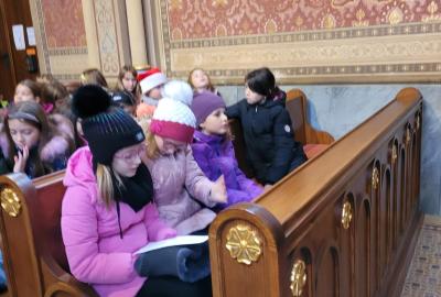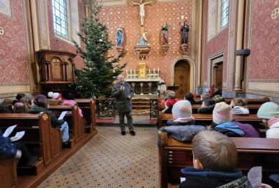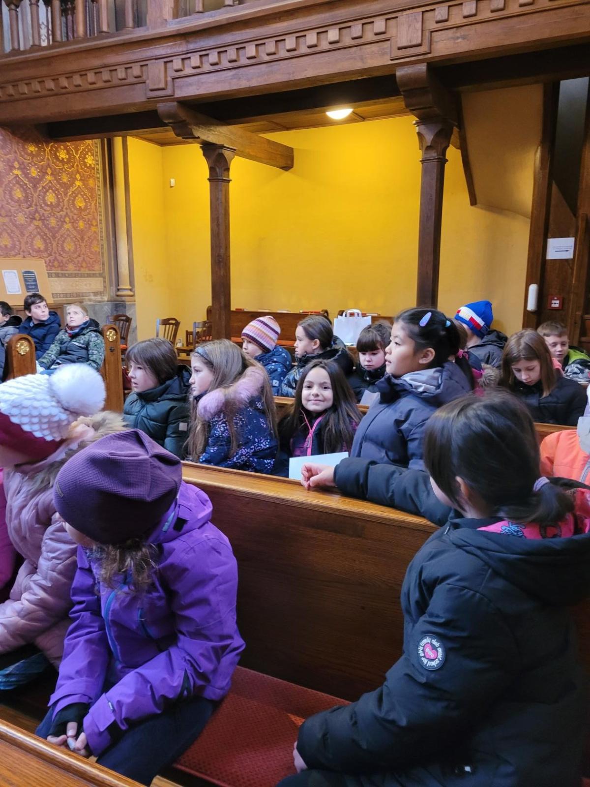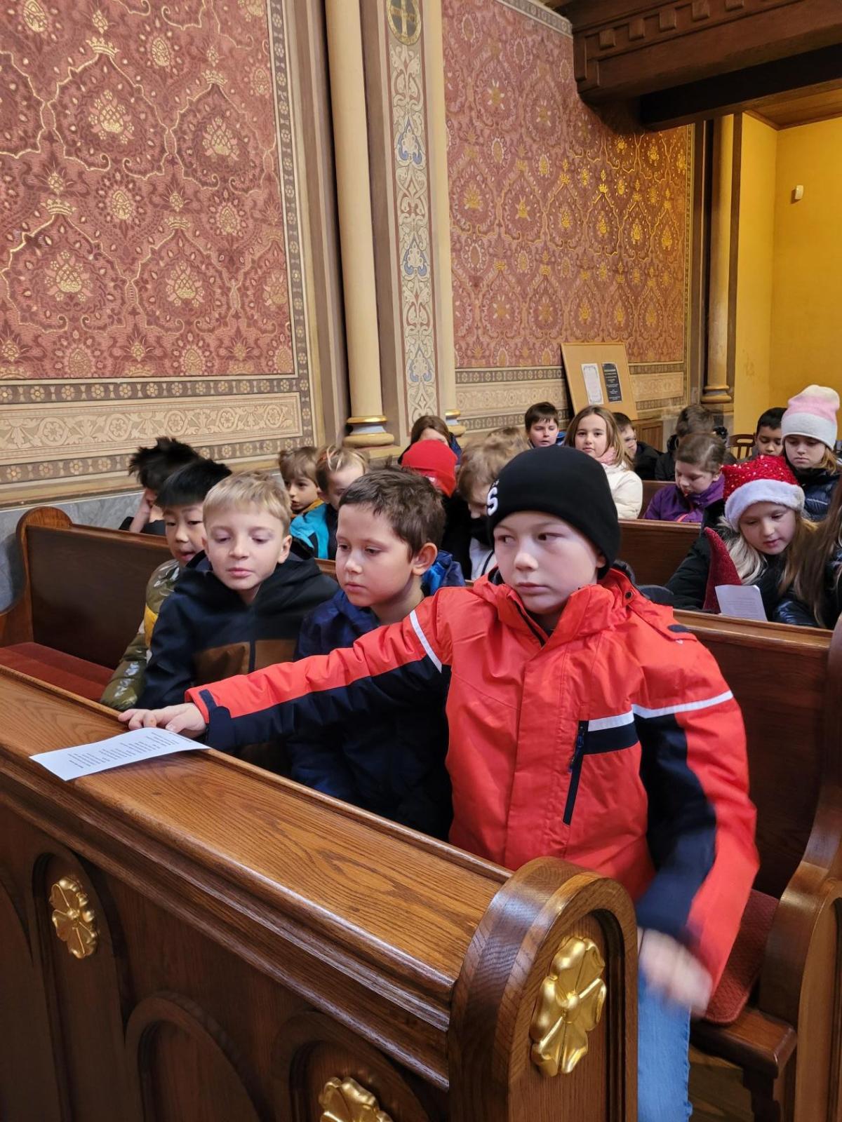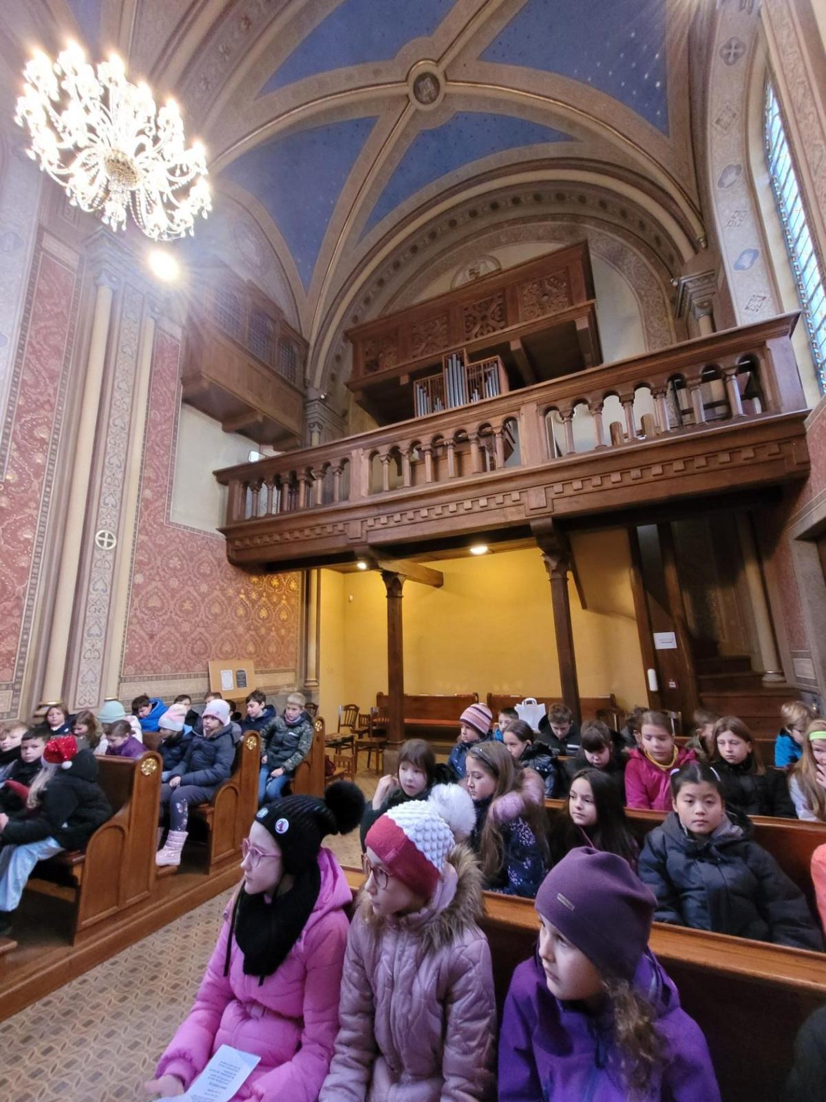 Ve čtvrtek jsme se na Vánoce naladili hudebně – jako každý rok totiž místní pan farář pozval břežanské děti na zpívání koled v kapli sv. Máří Magdalény, což si nenechala ujít ani 3.A. Za zvuků varhan jsme si zanotovali např. písně Narodil se Kristus Pán nebo Nesem vám noviny a osvěžili si tak jejich texty, abychom je 24. prosince měli v živé paměti.