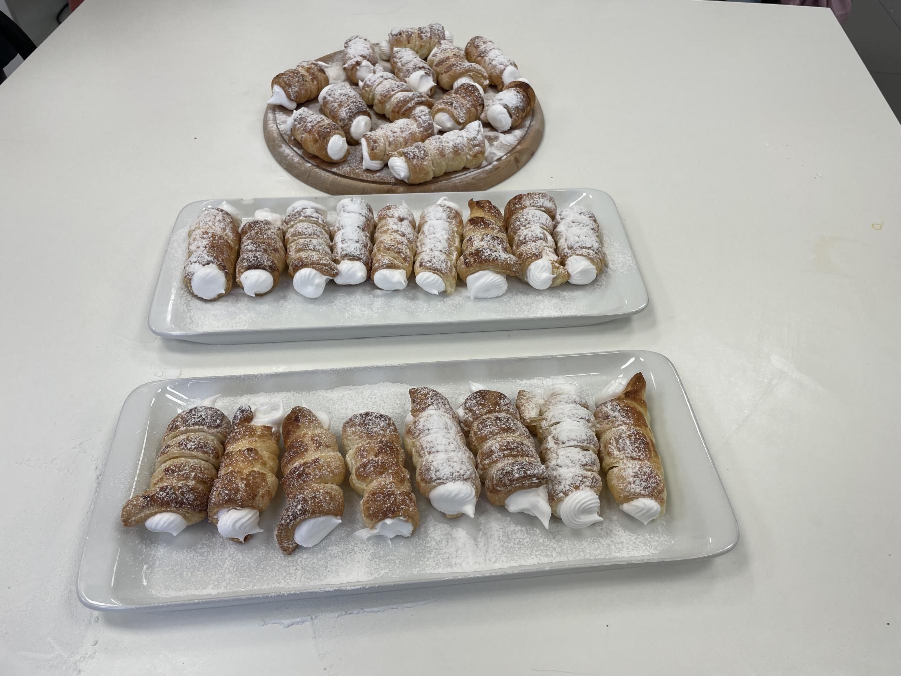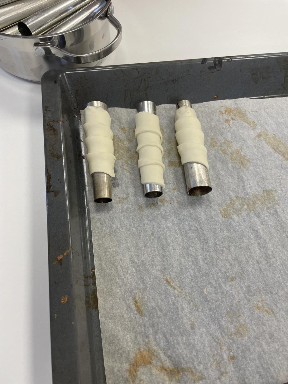Ani ve snu jsem si nepomyslela, že s těmito trubičkami budu u dětí slavit tak velký úspěch. Kremrole se dají připravovat z různých těst a náplň si může každý zvolit dle své chuti. V naší cvičné kuchyni si kremrole připravují děti z kupovaného listového těsta a bílkového sněhu/ten je při přípravě tepelně upraven/. A tak si každý z dětí vyzkoušel krájení a natočení těsta na kovové trubičky, přípravu sněhu a plnění trubiček. Děti si přípravu moc a moc užily. Jen v málokterých rodinách, jak mi prozradily děti, se tento zákusek připravuje.