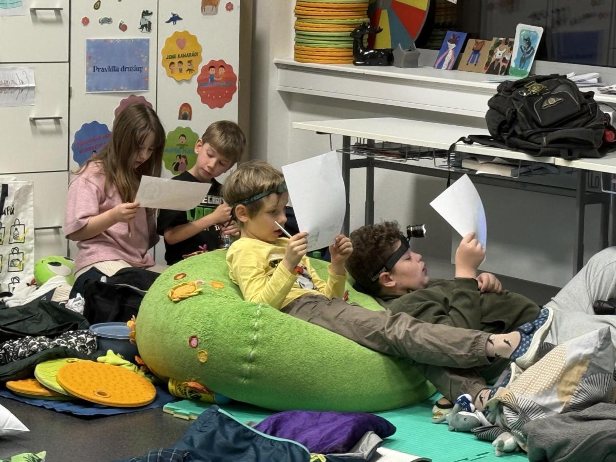Také letos jsme se zapojili do akce Noc s Andersenem. Program jsme zahájili návštěvou místní knihovny, kde si pro nás paní knihovnice připravila poutavé povídání o spisovateli Miloši Macourkovi. Společně jsme si připomněli jeho tvorbu pro děti. Po návratu do školy jsme si pochutnali na výborné večeři. Po setmění se děti vydaly na bojovku po škole, kde měly připravených 15 stanovišť s otázkami, které prověřily jejich znalosti ze života H.Ch. Andersena a jeho bohaté tvorby. Bojovku všichni zvládli s odvahou a nadšením. Večer jsme zakončili krátkou pohádkou a kolem půlnoci děti spokojeně usnuly. Ráno nás čekala sladká snídaně, kterou připravili rodiče, kterým patří také velké poděkování.