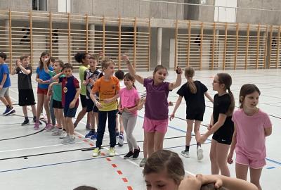 Ve sportovní hale proběhl napínavý štafetový běh o velikonoční beránky, kterého se zúčastnily pouze třetí třídy. Atmosféra byla plná napětí, fandění a sportovního nasazení.